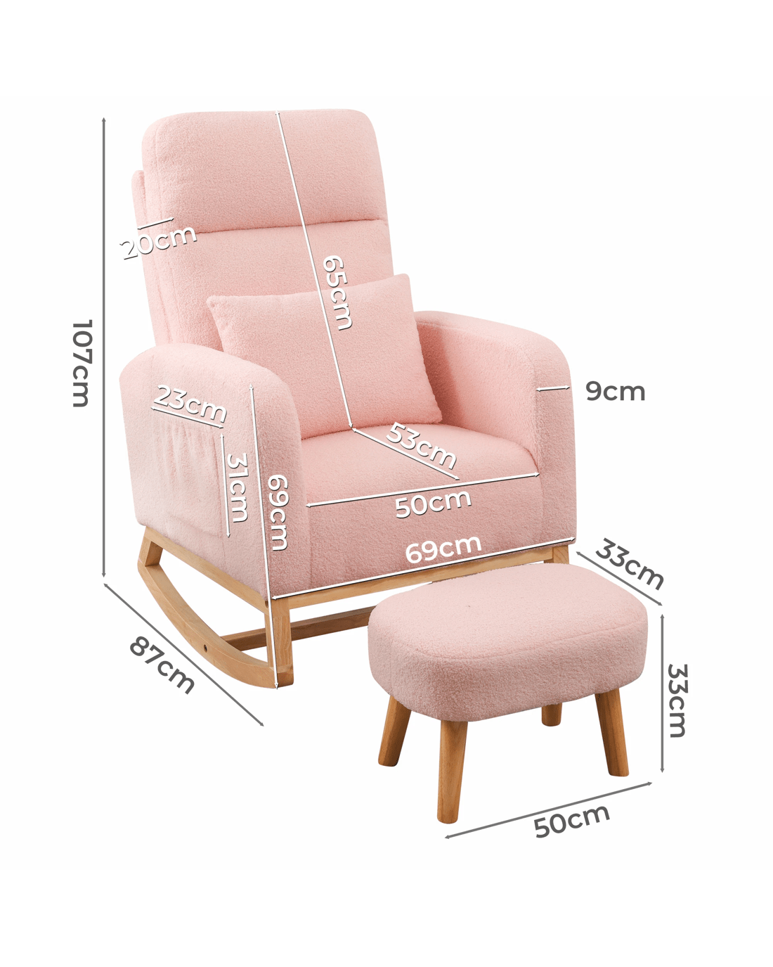 Bring home timeless comfort and style with the Levede Rocking Chair and Ottoman Set — a perfect companion for any rocking chair nursery or living space. This plush beige rocking chair is upholstered in soft teddy bear fabric and filled with high-density foam for unbeatable comfort and lasting resilience. Designed with a high backrest and wide armrests, this rocker chair offers excellent body support, making it an ideal accent chair for adults seeking a quiet spot to relax.