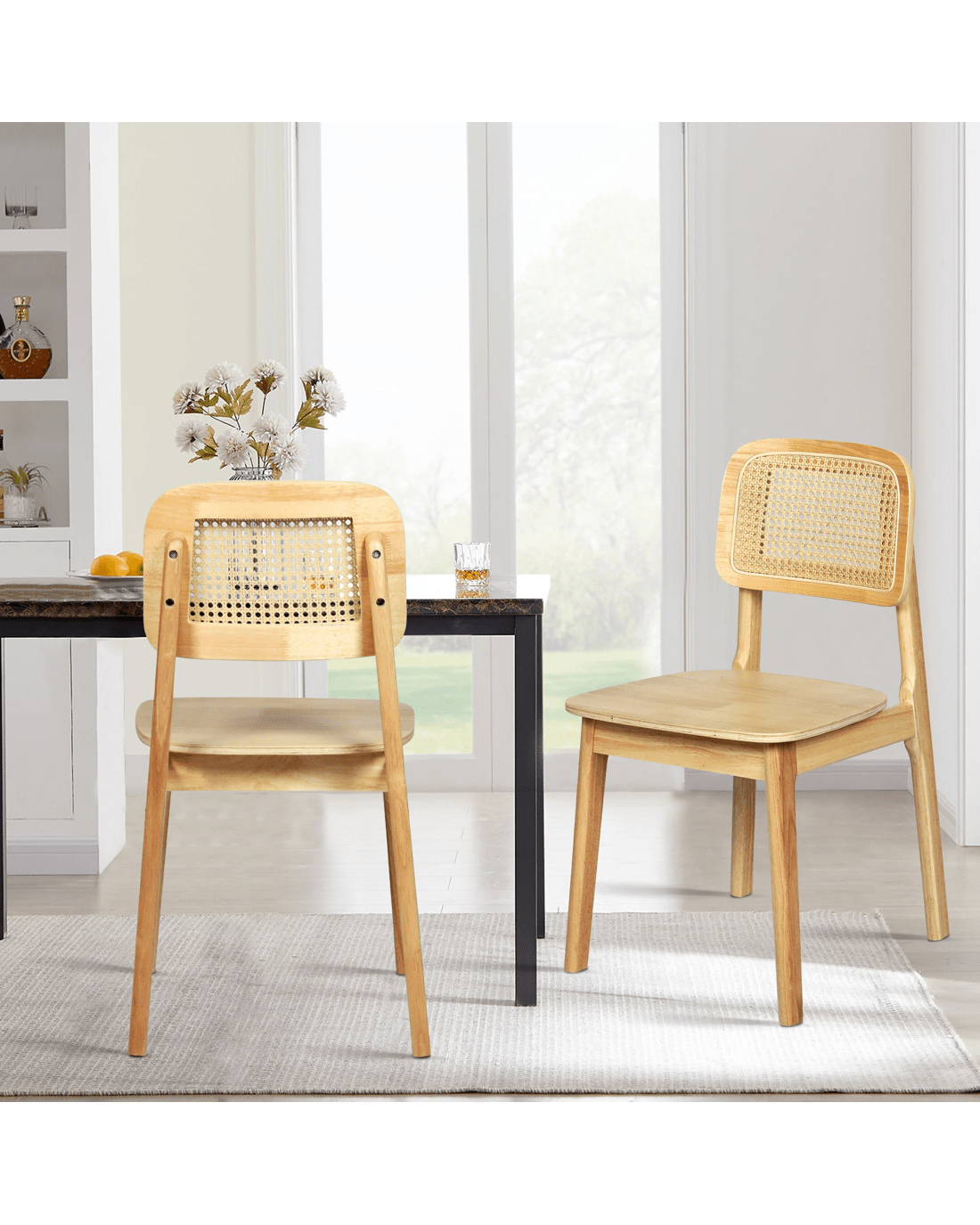 Experience comfort and timeless style with the Levede Cane Rattan Dining Chairs Set of 2. These stunning cane dining chairs are designed for both aesthetic appeal and lasting durability. Crafted from solid rubber wood, the sturdy frame and curved wood chair seat provide optimal support and elegance, making them the perfect dining chairs for everyday meals or formal gatherings.
