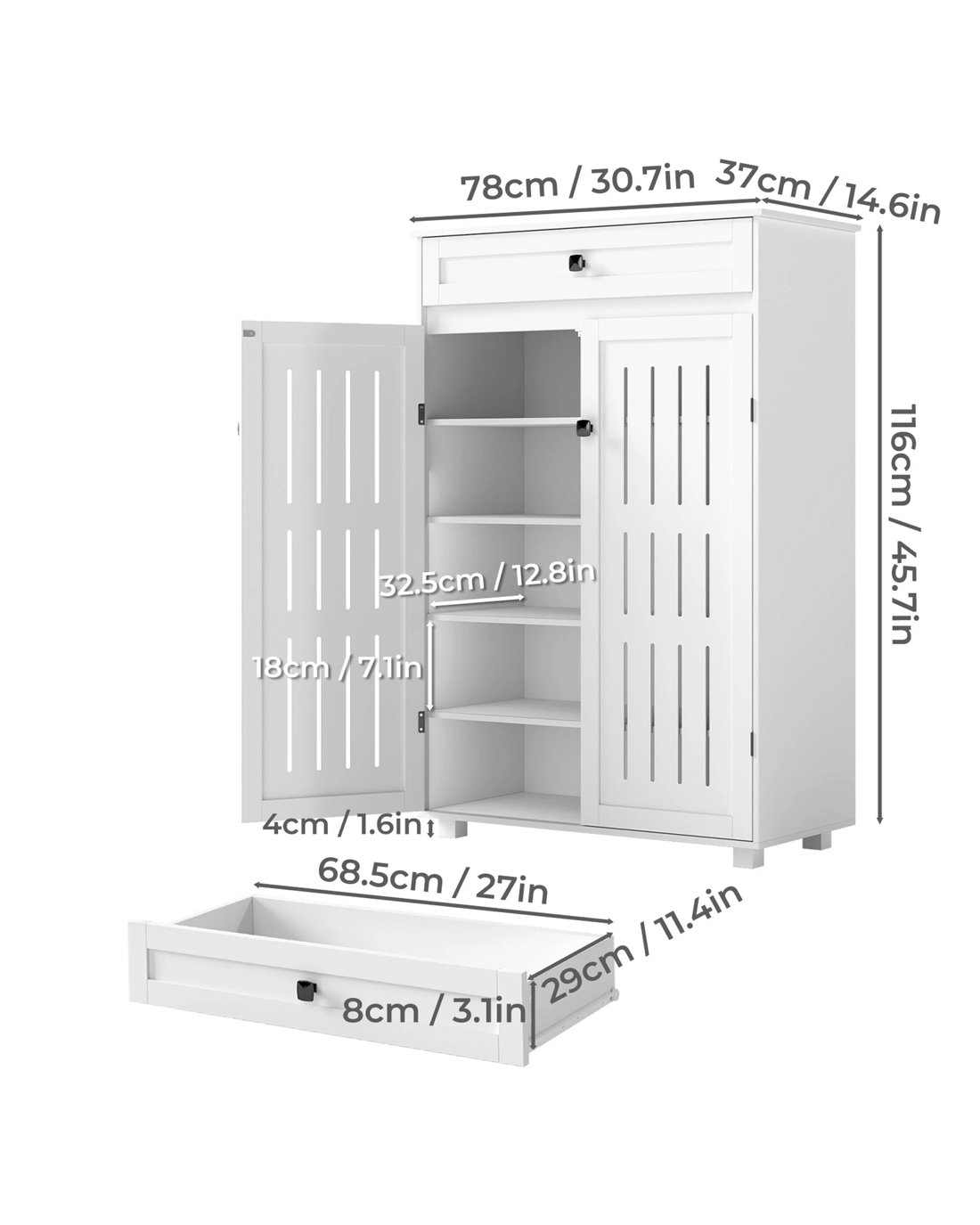 Dimensions: 78cm x 37cm x 116 cm (L x W x H)