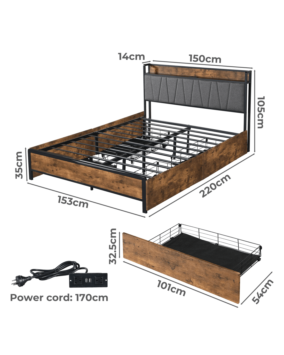 Sold by Sello ProductsLevede Usb Port Bed Frame - Queen