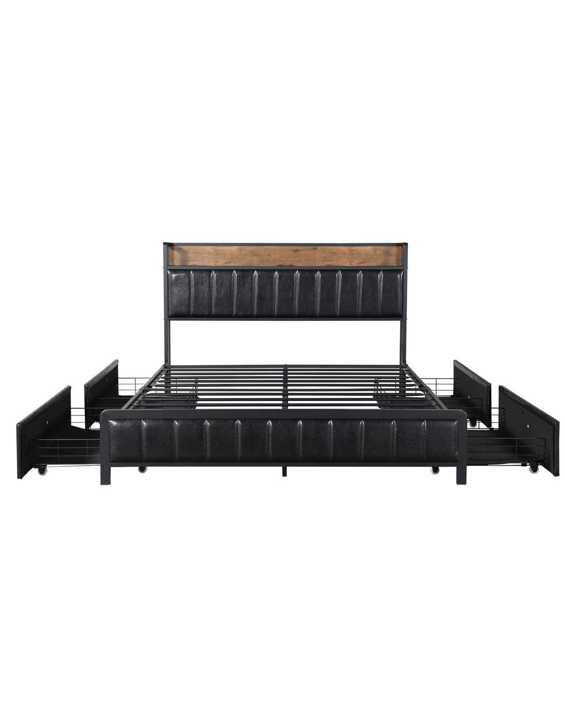 • Industrial Storage Bed Frame with 4 Under-Bed Drawers: Keep your space organized and effortlessly clean.