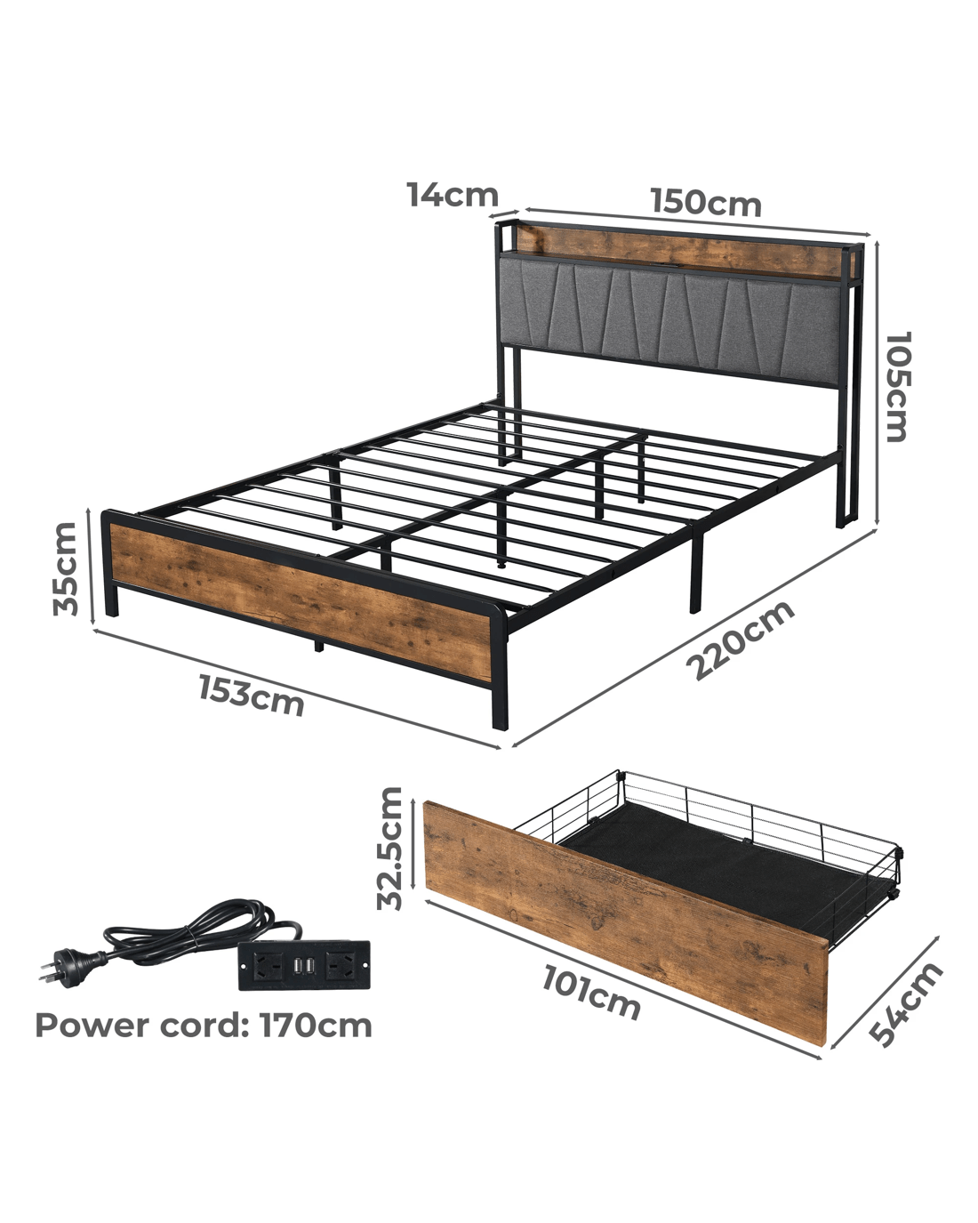 Levede Usb Port Bed Frame - Queen