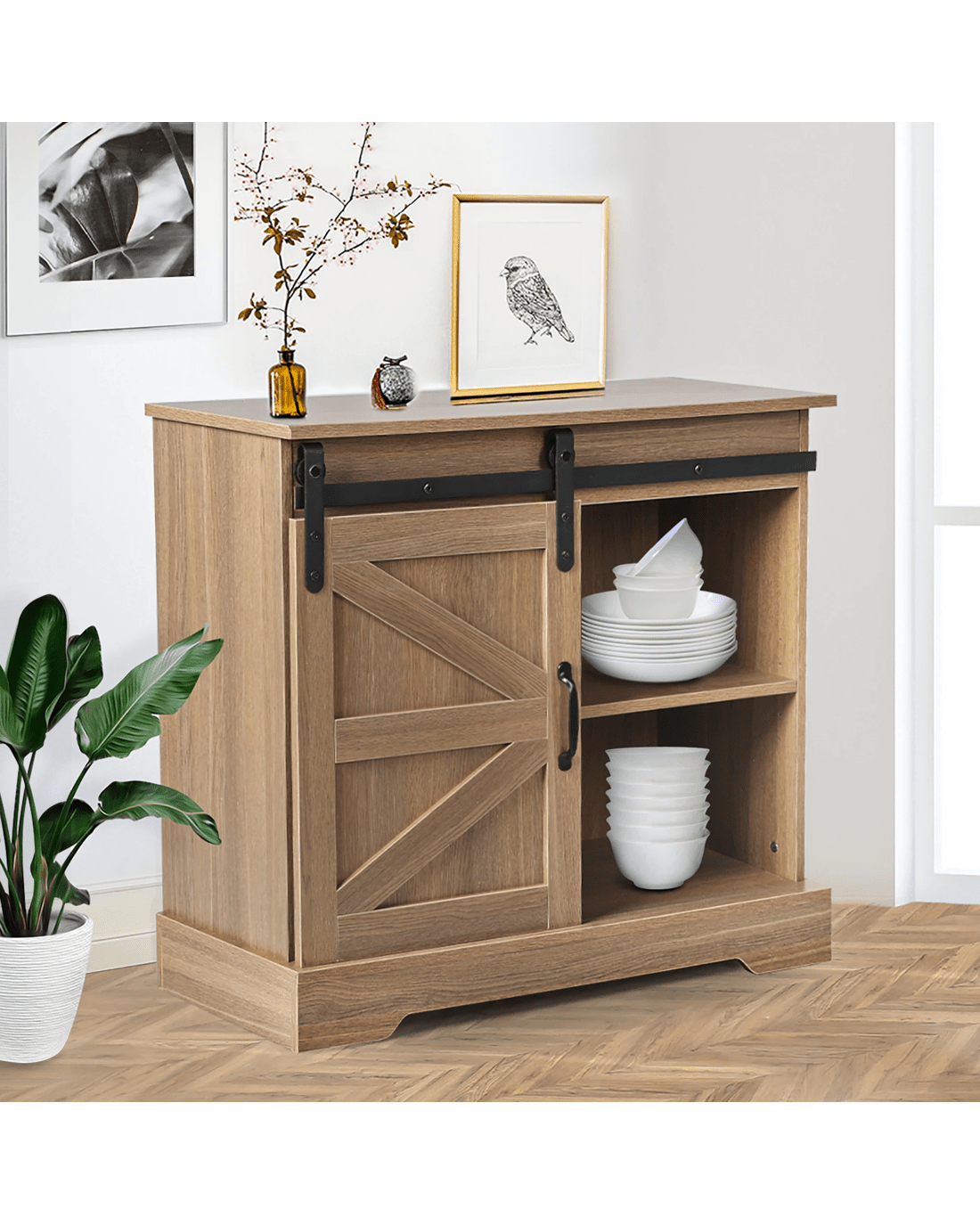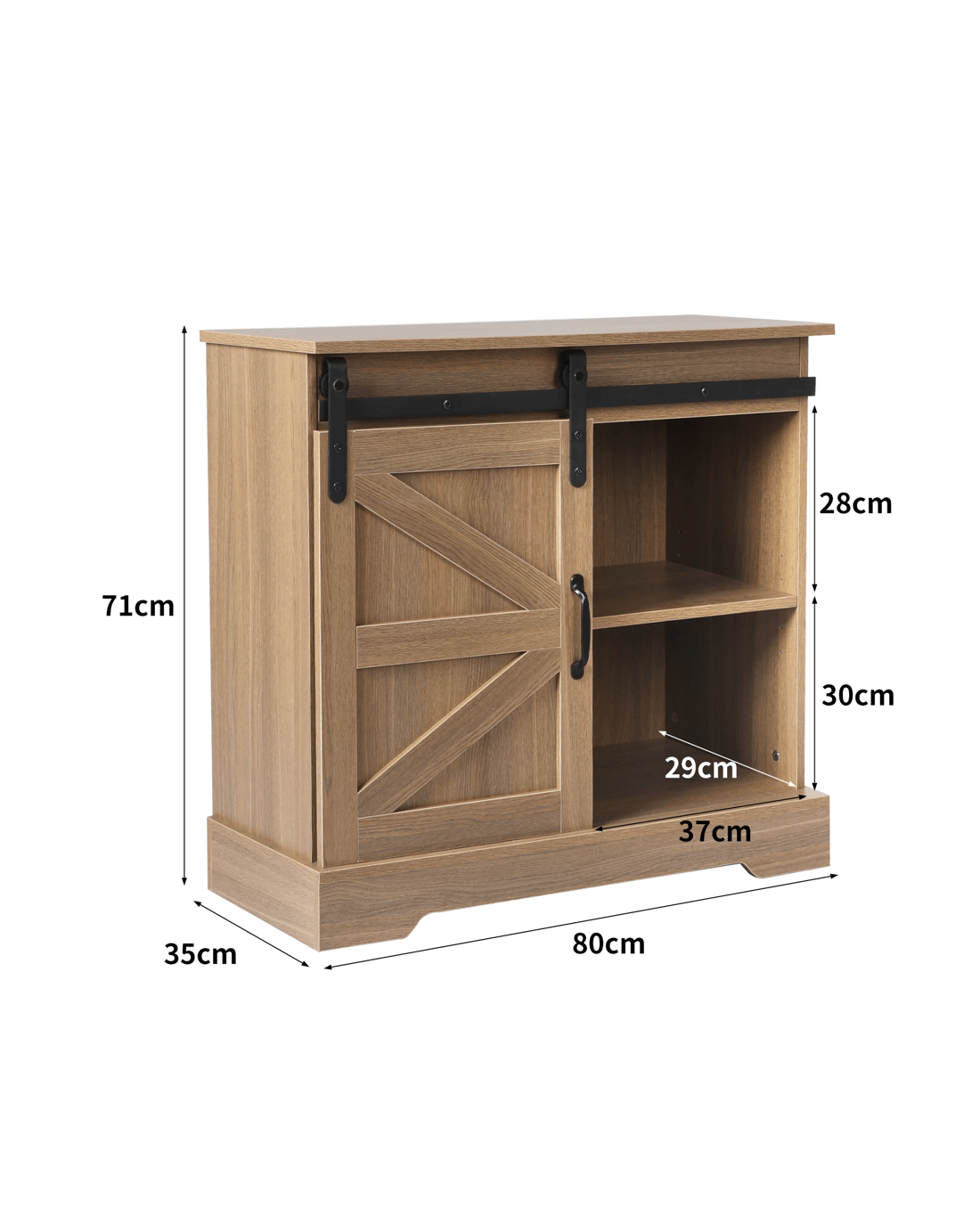 Store all your bowls, cups, plates, mugs and more. Slide open the door to your rustic sliding sideboard. Use the shelves inside the sideboard cupboard to organize your essentials. Need more storage? Get yourself a second Levede buffet sideboard and keep your space clutter-free.