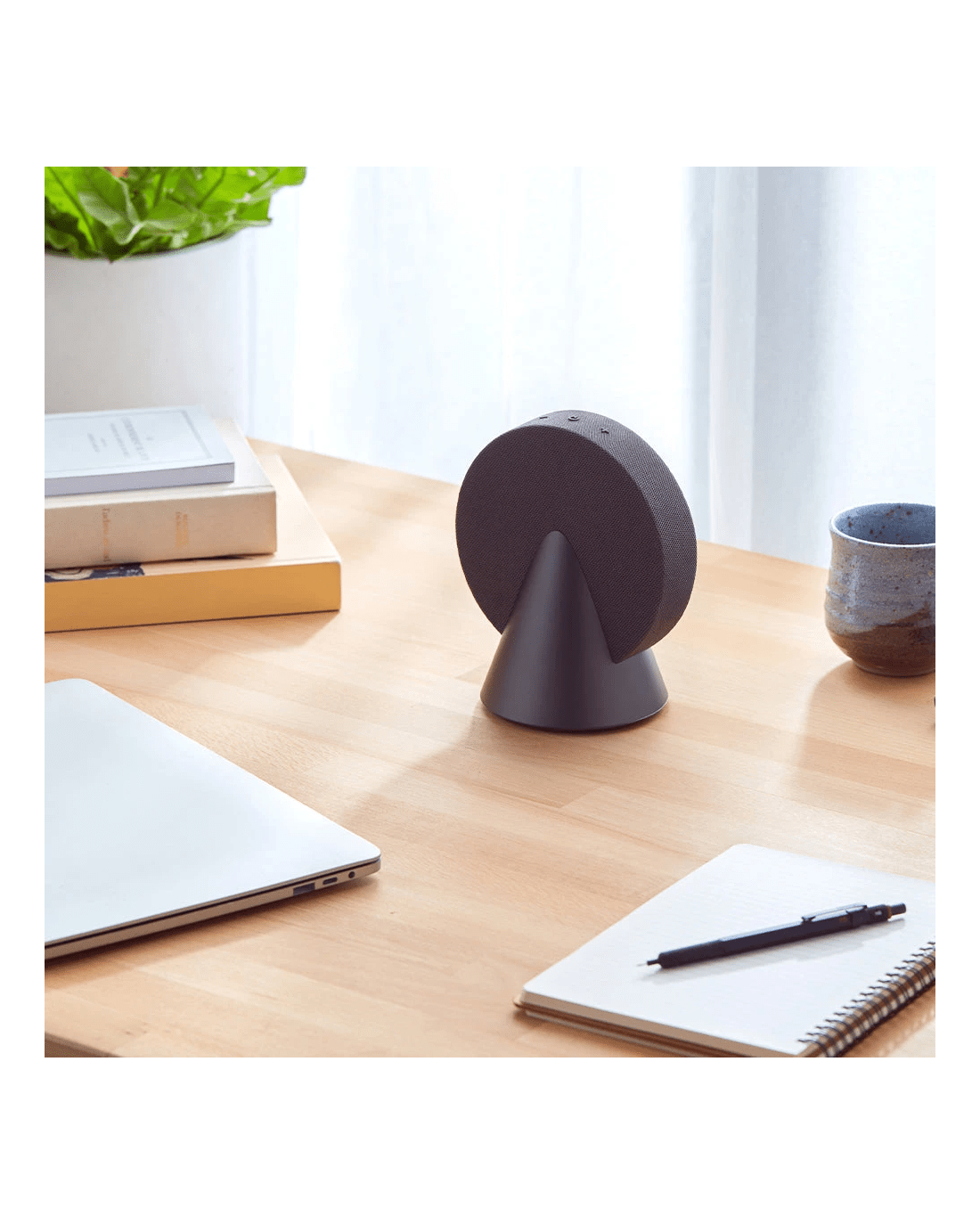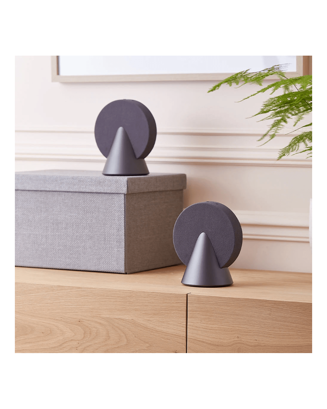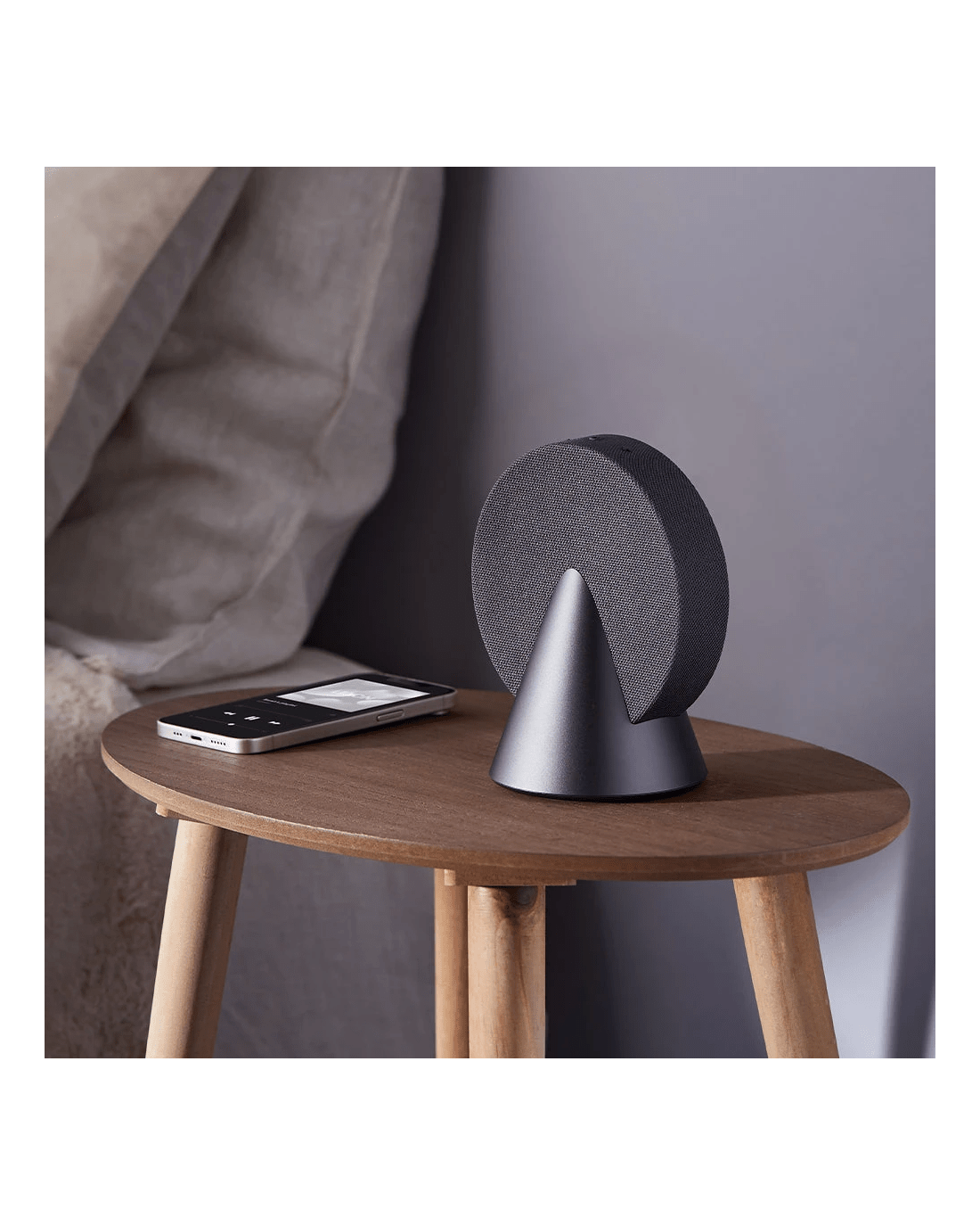 Lexon Conic 360 Bluetooth Speaker - Grey - This 360° Bluetooth speaker delivers immersive sound with its advanced audio configuration, featuring two active drivers and one passive driver. It includes buttons for easy audio controls and volume adjustment. For an enhanced stereo experience, the speaker is TWS compatible. With a battery life of up to 12 hours, it can be conveniently recharged via the included USB-C cable, with a full charging time of 4 hours. The speaker is made from high-quality aluminum, fabric, and ABS materials, combining durability with a stylish design.