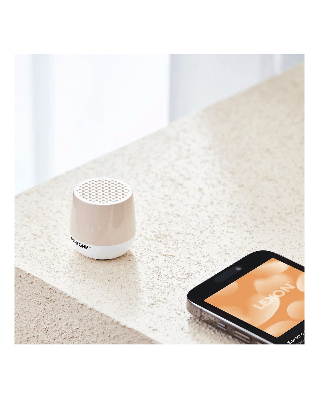 Lexon Mino+ Mini Bluetooth Speaker PANTONE - Sand - This mini portable Bluetooth speaker fits in the palm of your hand to deliver an impressive 3W sound quality. The upgraded version of our best-selling mini Bluetooth speaker, now wirelessly rechargeable. Mino+ offers two charging methods: wirelessly with any Qi-enabled charging pad or via its USB-C port.Stream your music from your smartphone or tablet for up to 3 hours