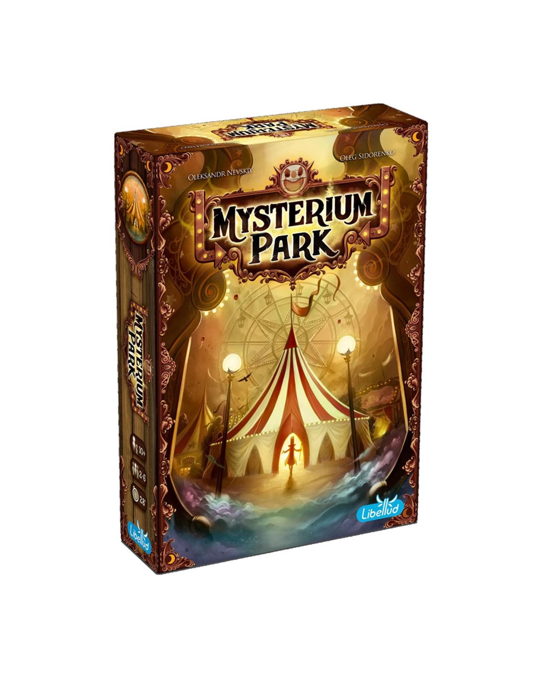 Welcome to Mysterium Park! Its cotton candies, its circus, its dark secrets... The park's former director has disappeared, but the investigation came to nothing. Since that night, weird things are happening on the fairground. As psychics, you're convinced that a ghost haunts this carnival... You're now intent on giving it a chance to reveal the truth. In this cooperative stand-alone game, the ghost sends visions with illustrated cards. The psychics try to interpret them in order to rule out certain suspects and locations. Then, they'll seize their only chance to piece together what happened to the director. You have only six nights before the carnival leaves town... Open your minds and find the truth! Set in the lights of a 1950's US fairground, Mysterium Park shares the same core mechanism with the famous award-winning game it reimplements, though bringing a different approach: it is smaller and faster, thanks to very quick setup and simplified rules. Mysterium is a milestone in immersive and eye-catching experiences close to role-playing; with Mysterium Park, you can enjoy the heart of it in a more condensed way. Ages: 10 + | Players: 2 - 6