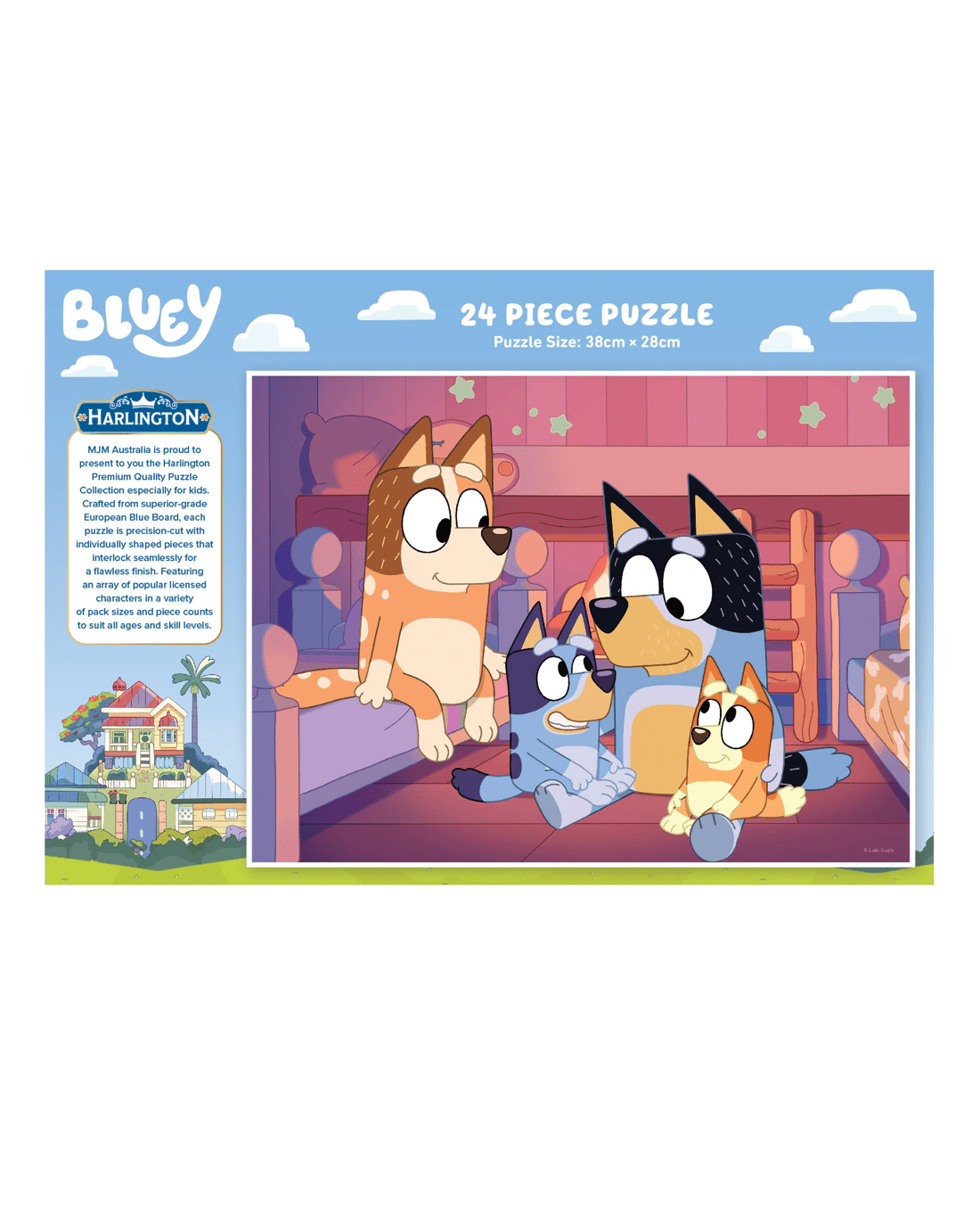 Invite your child into a colourful world of discovery with the Harlington Kids 24 Pc Puzzle. Featuring individually shaped pieces made from European Blue Board, each puzzle offers a hands-on challenge designed just for young minds aged 3 and above. Every additional piece placed brings excitement, builds coordination, and helps boost their confidence. The bright scenes filled with favourite licenced characters spark the imagination and inspire creative thinking, turning playtime into a learning adventure. Encourage screen-free play and provide a sense of accomplishment with a fun activity perfect for little hands. Give your child a joyful puzzle experience that they will want to revisit again and again.Features