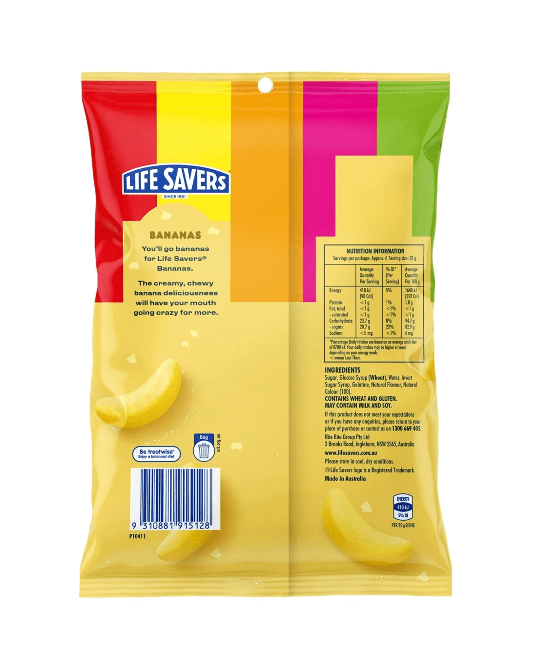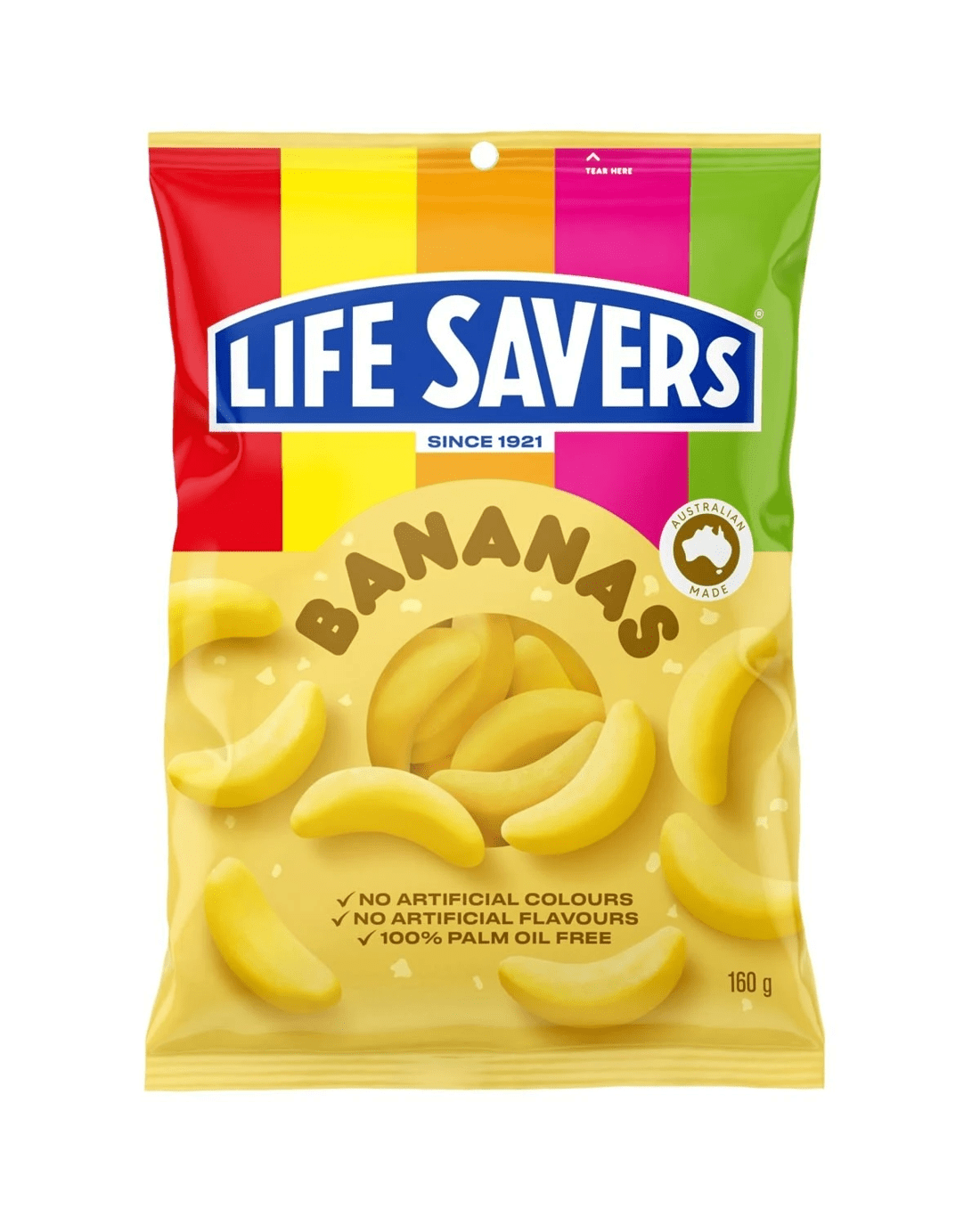 You'll go bananas for Life Savers Bananas. The creamy, chewy banana deliciousness will have your mouth going crazy for more. And, they're proudly made in Australia with no artificial colours or flavours and 100% palm oil free.