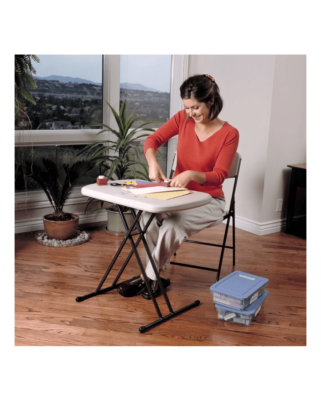 This Lifetime Personal Folding Table has a versatile design which is suitable for use indoors or outdoors. It provides a sturdy place to enjoy meals and more while you're camping, at a barbeque or simply sitting comfortably in front of the TV. When you're done using the table, it quickly and easily folds away for convenient storage and portability.