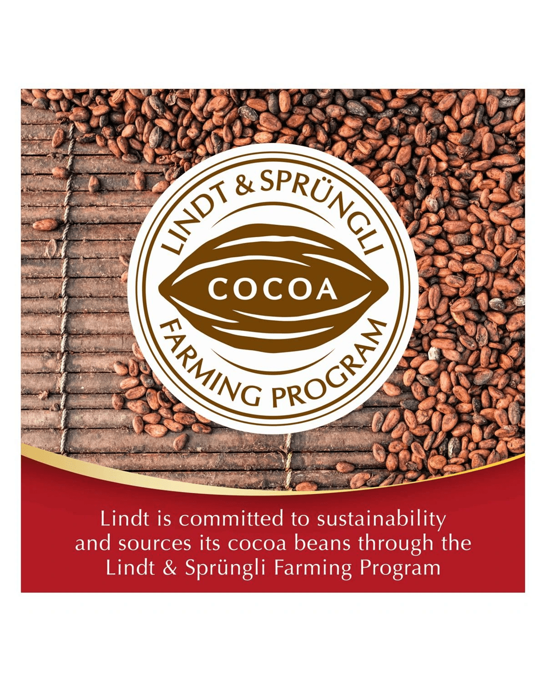- Lindt is committed to sustainability and sources its cocoa beans through the Lindt and Sprungli Farming Program