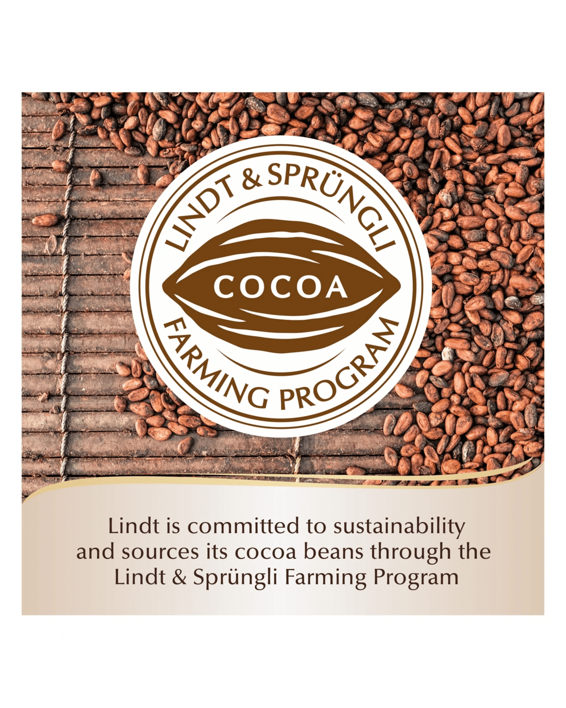 - Lindt is committed to sustainability and sources its cocoa beans through the Lindt & Sprungli Farming Program