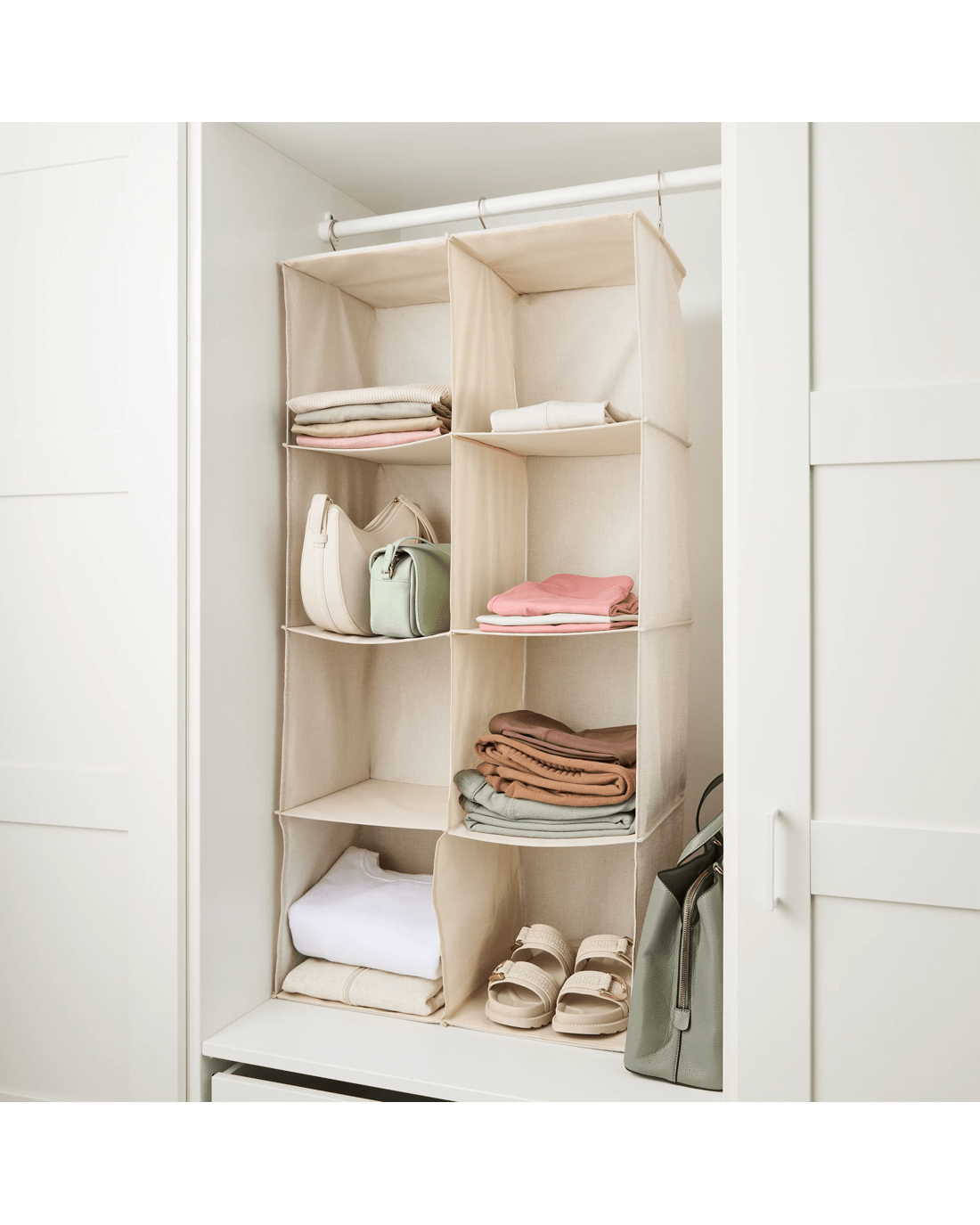 Linen Look 8 Cube Hanging Organiser - Beige