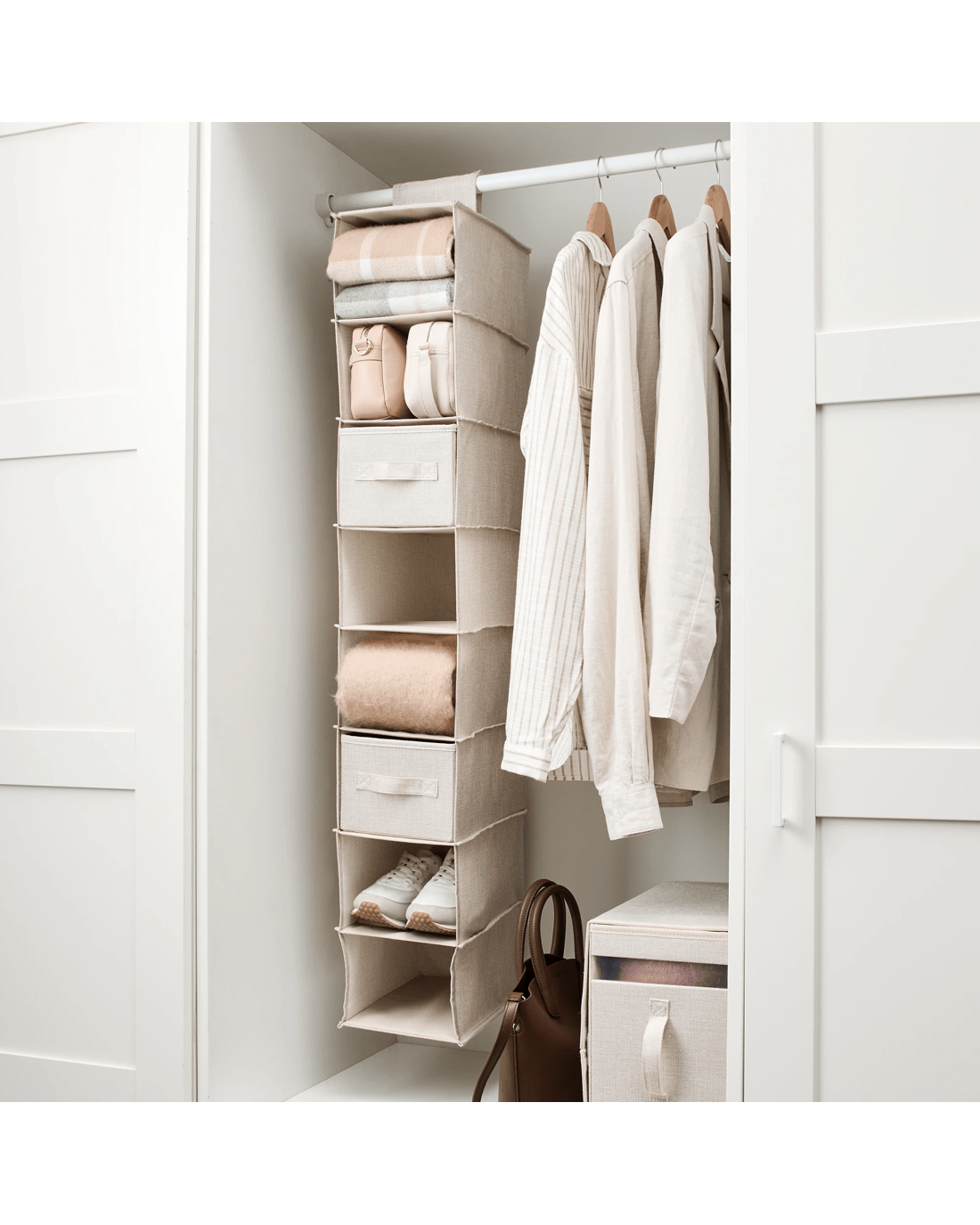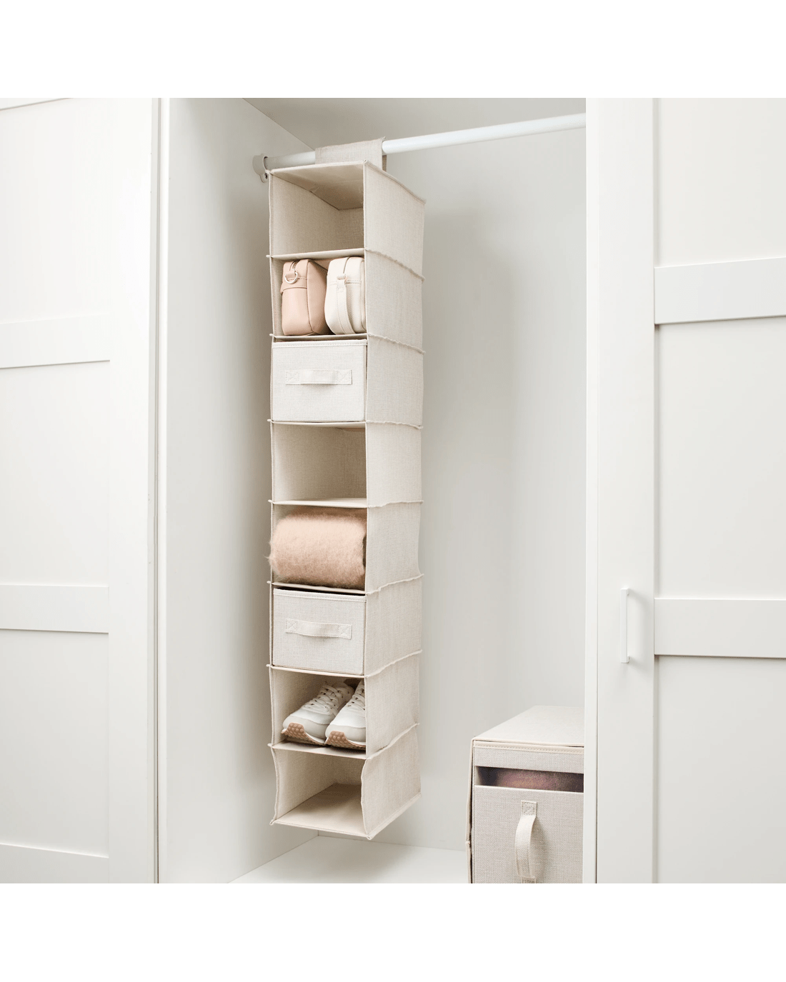 Linen Look Narrow Hanging Shelving with Drawers