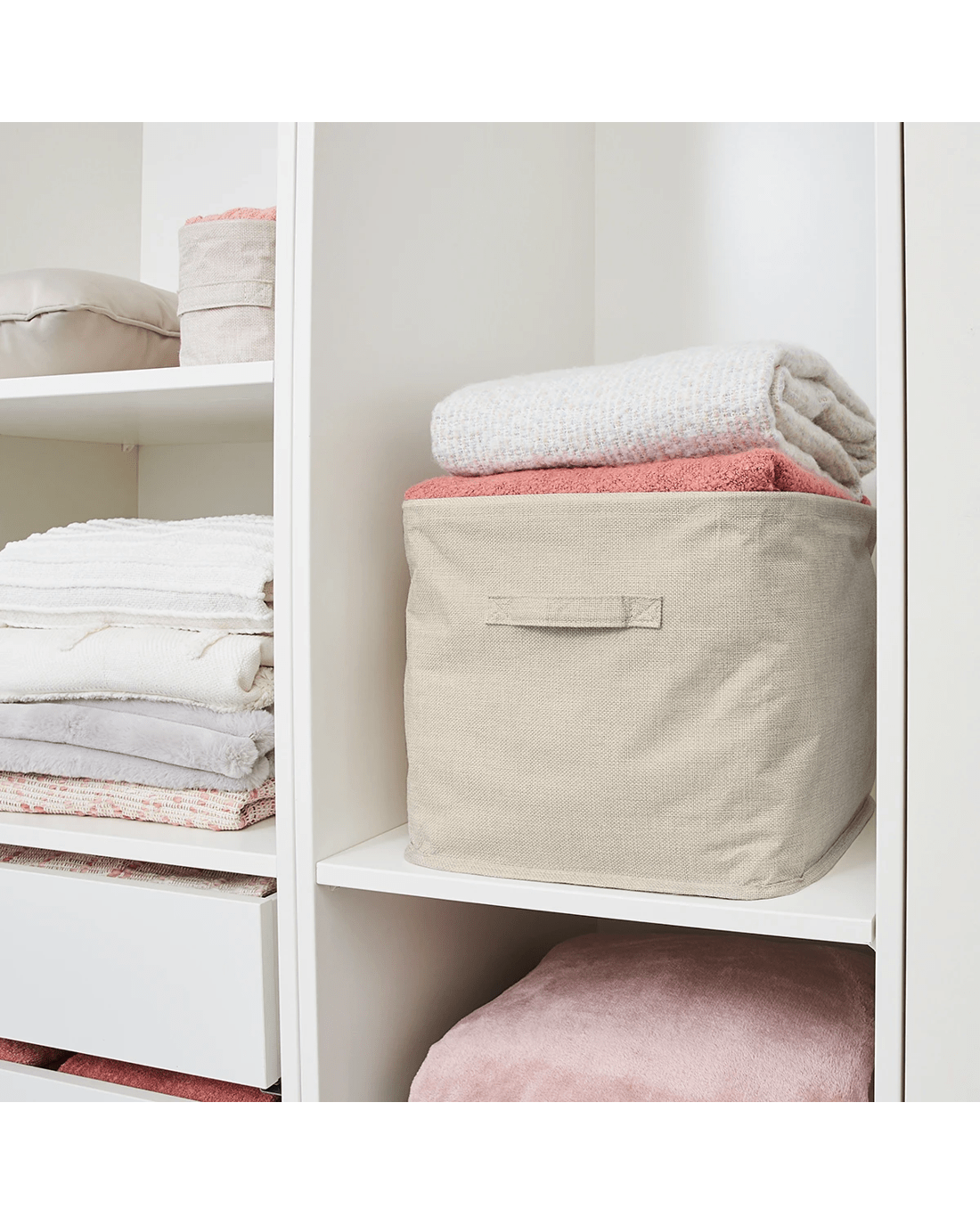 Linen Look Open Storage Box - Beige