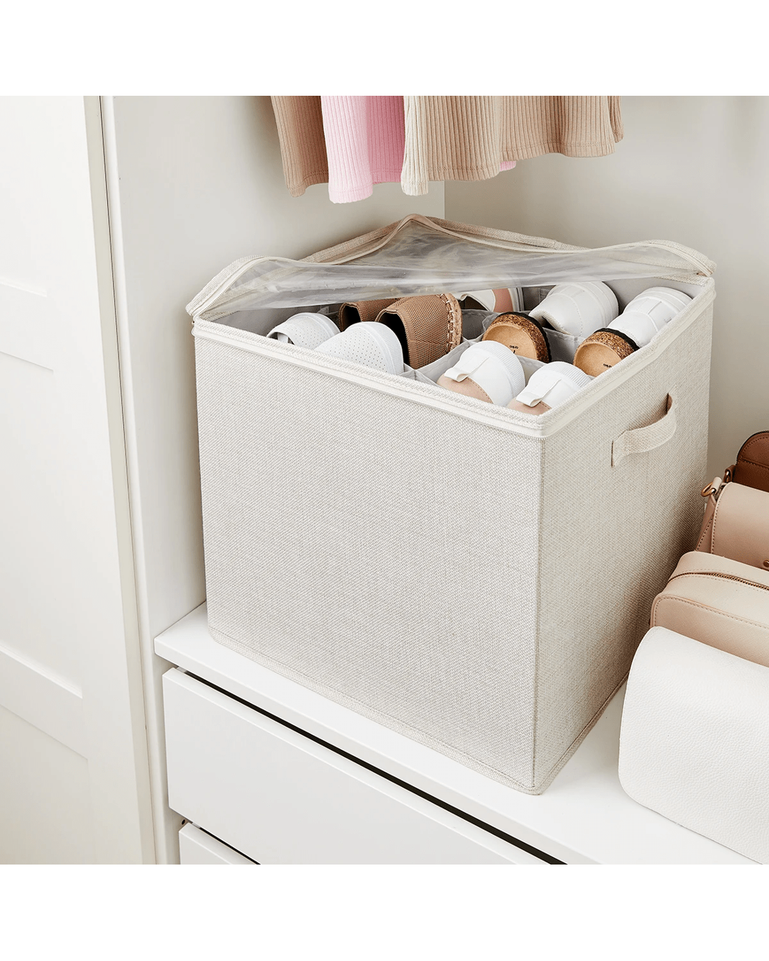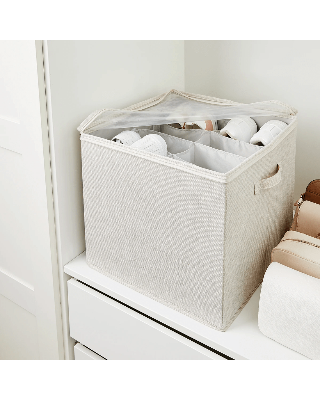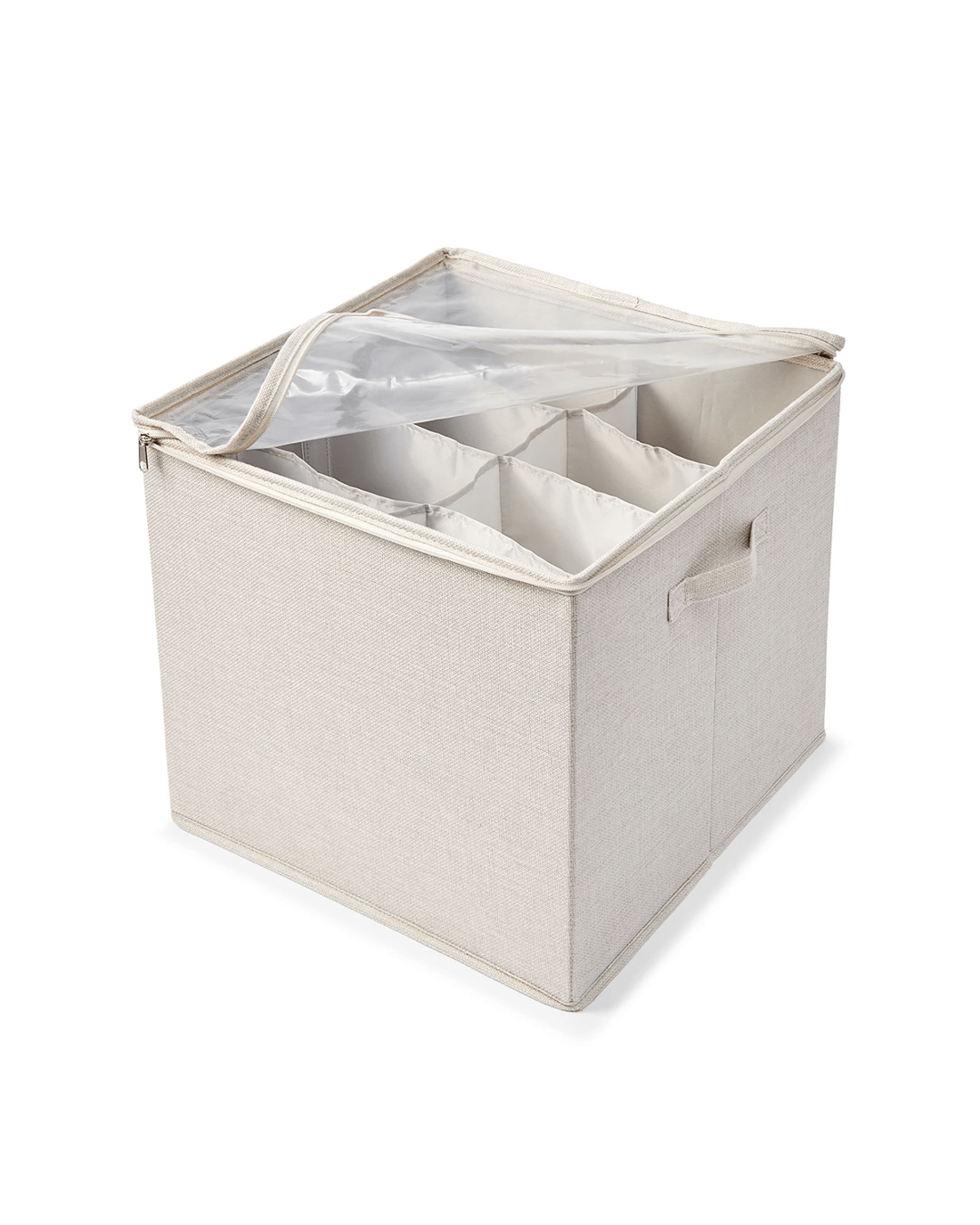 Linen Look Storage Box with Dividers - Beige