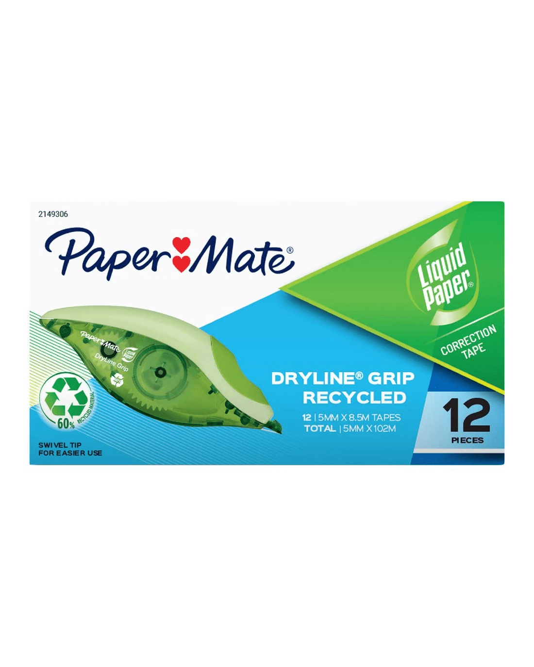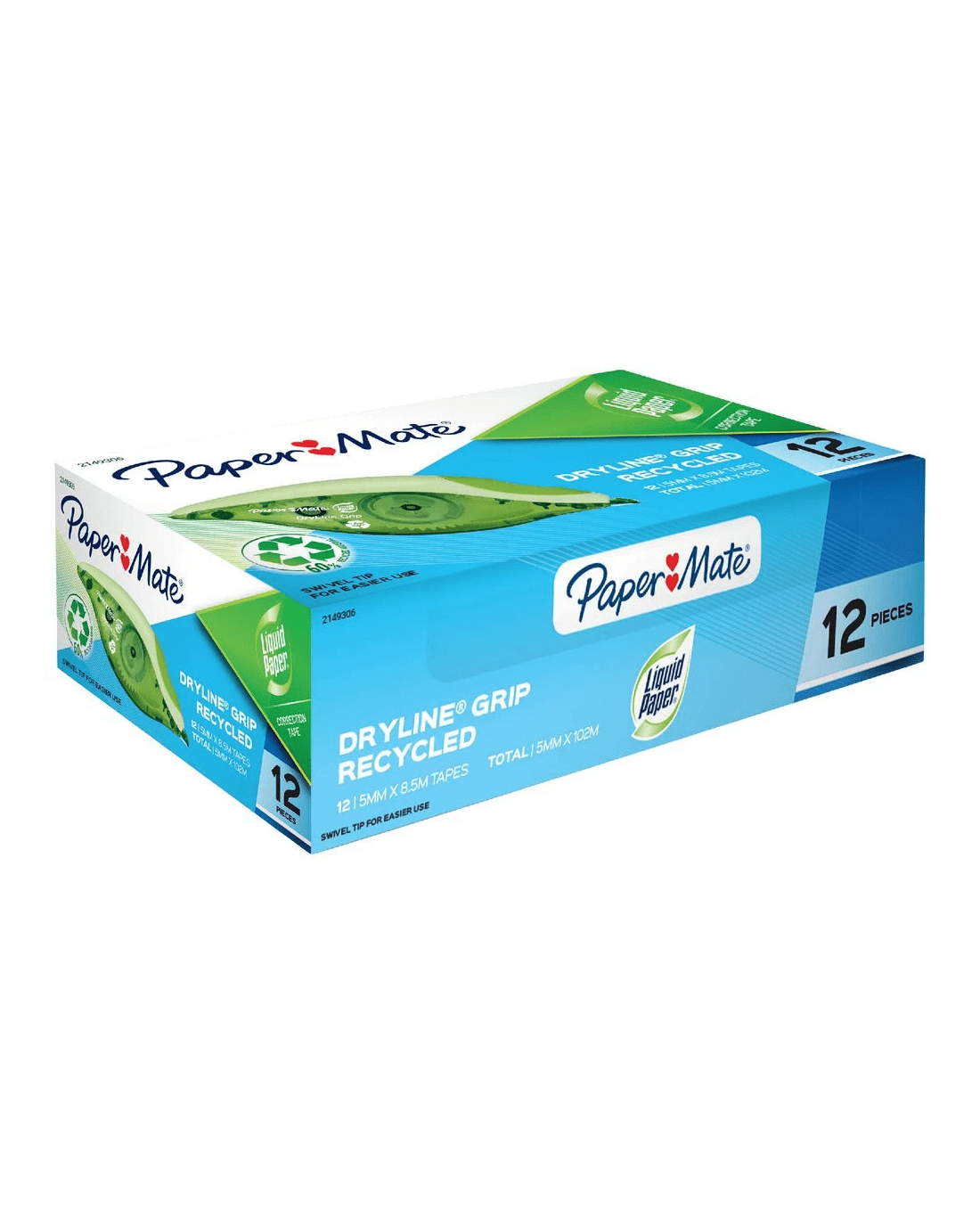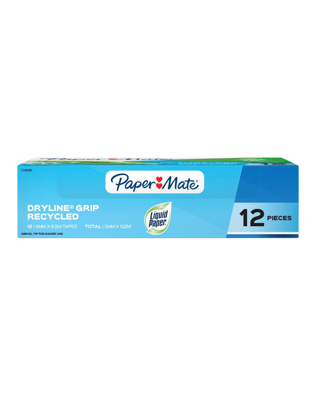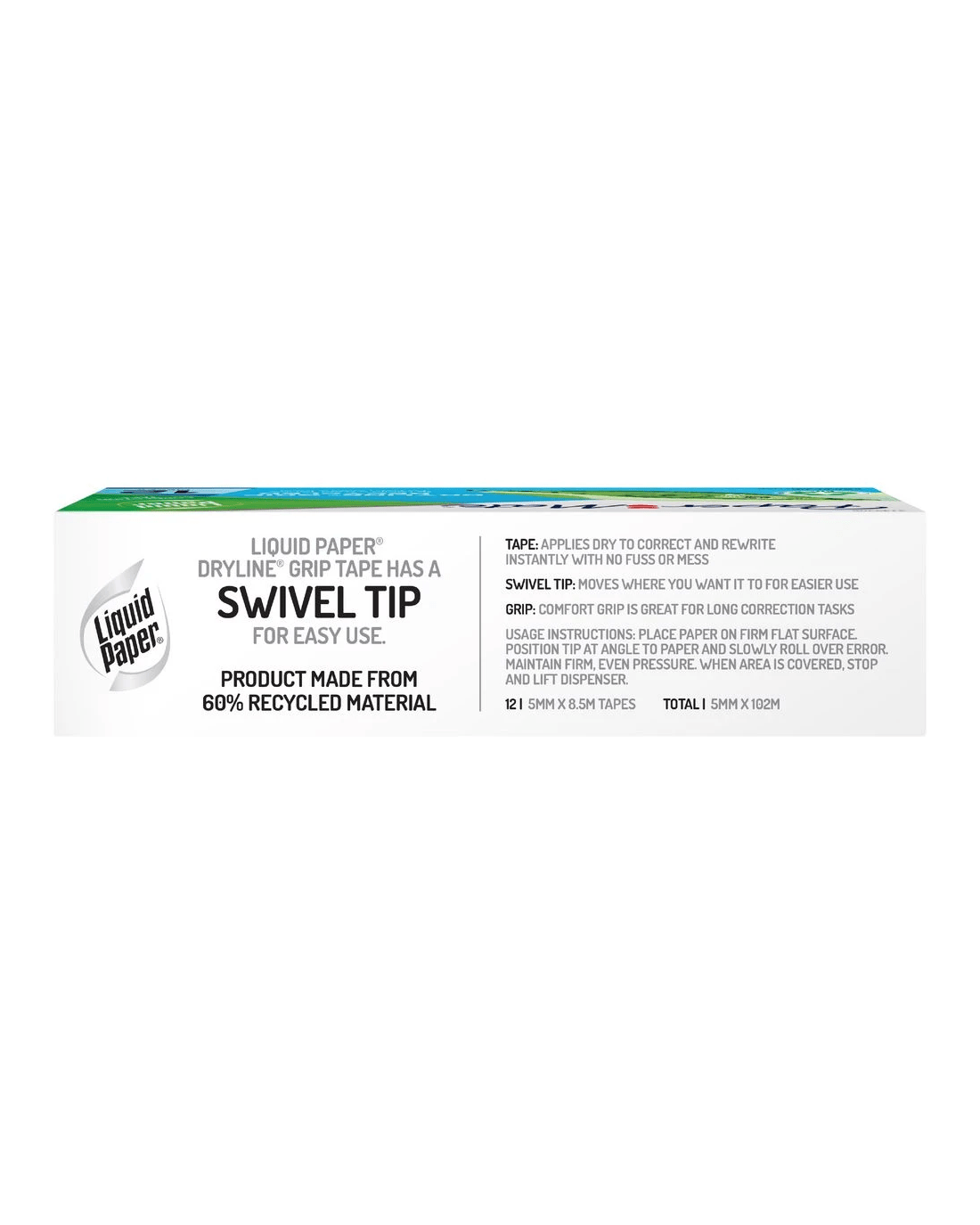 This Liquid Paper Dryline Grip Correction Tape gives you a handy way to remedy mistakes in your writing. It's easy to use and durable, with a comfortable grip and strong, break-resistant tape. They come in a convenient 12 pack, offering over 100 metres of correction tape.