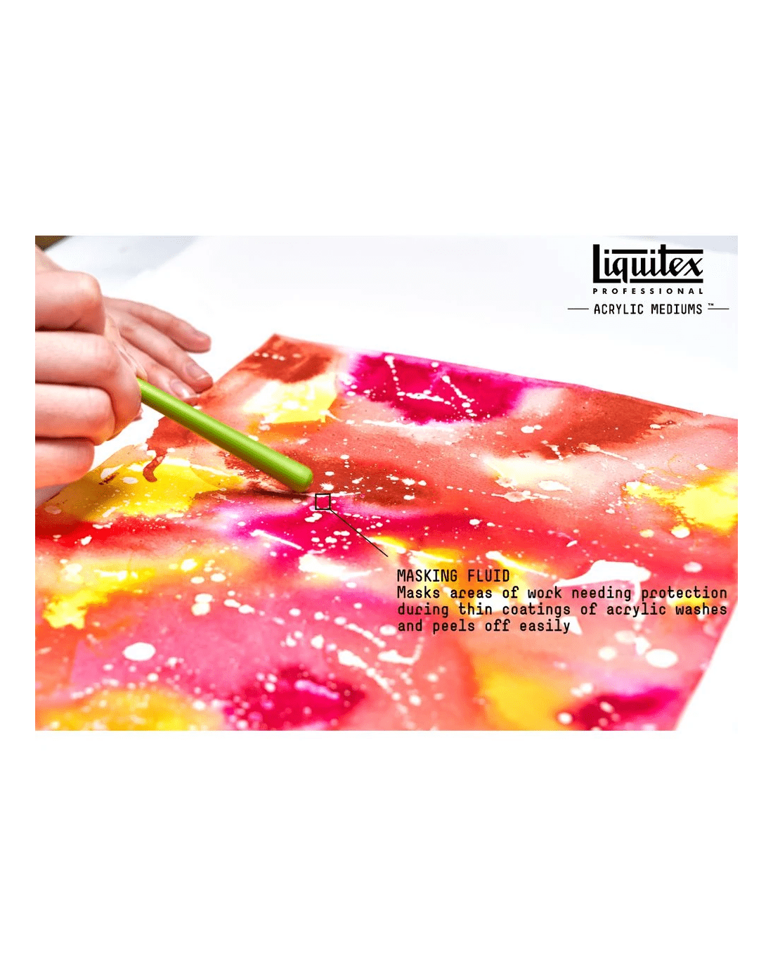 This Liquitex Masking Fluid Medium is a latex fluid that protects areas from colour penetration. Use this colourless, latex-based liquid with fluid applications of acrylic colour and washes. It's the perfect medium to block off areas of a painting and let the surface show through.