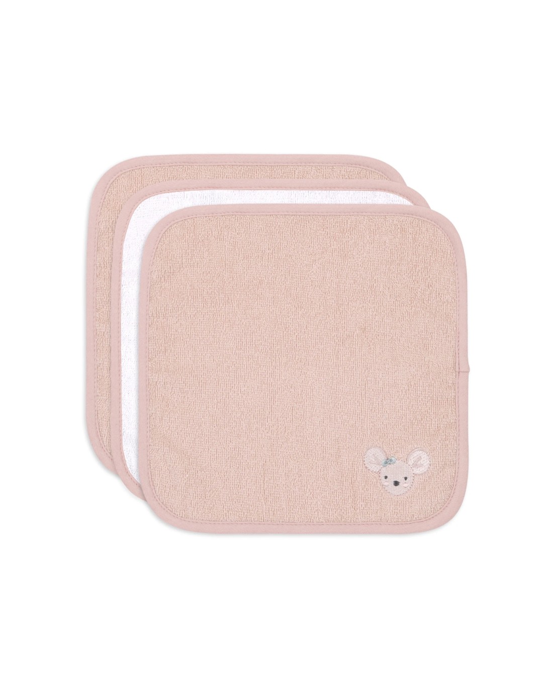 This set includes three generously sized washcloths featuring charming character embroidery and contrast jersey trim, adding a delightful touch to your baby's bath routine. Pair them with the coordinating Wildflower hooded bath towel for a complete and coordinated bath time experience.