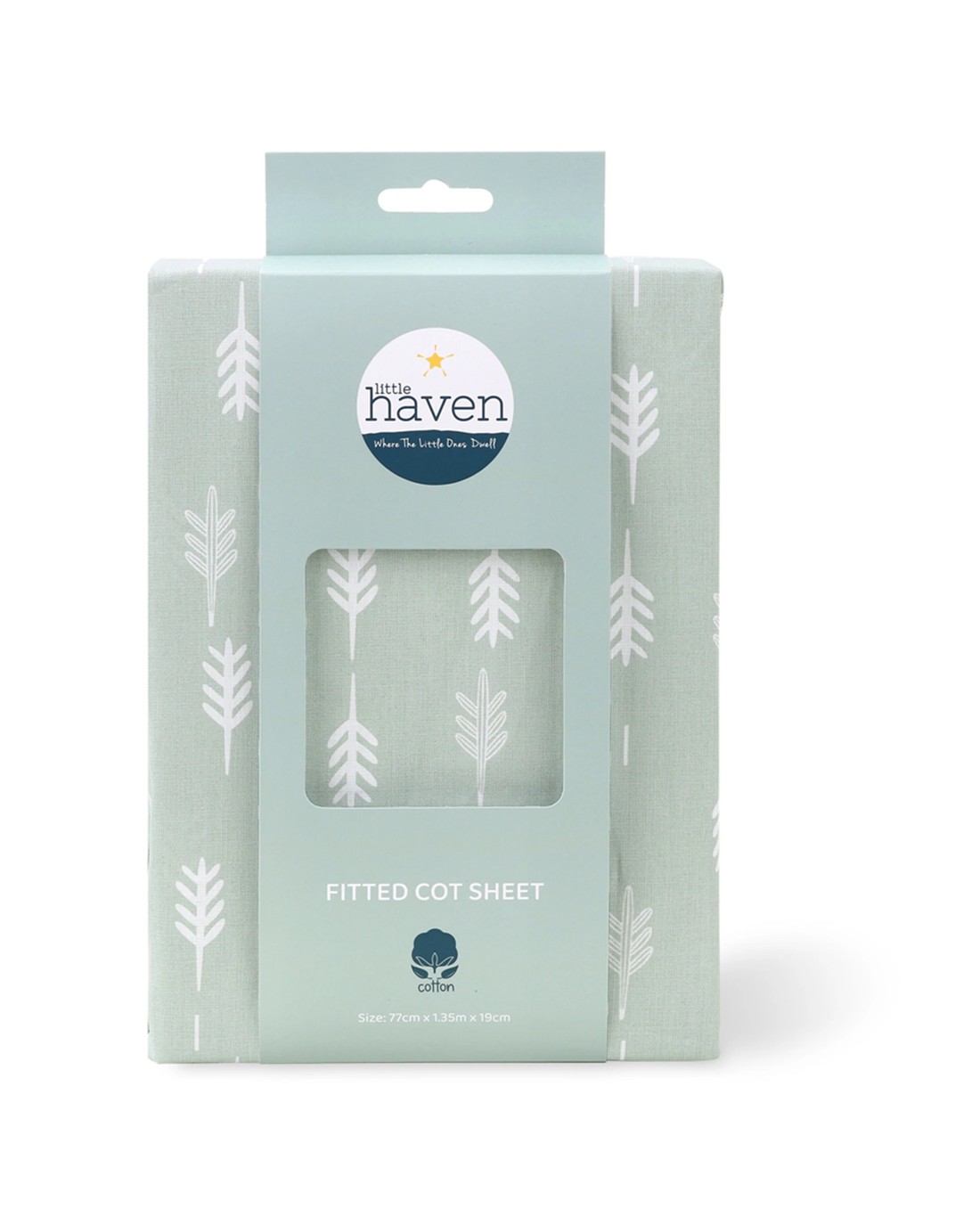 Little Haven Cot Fitted Sheet 100 Percent Cotton Foliage Baby Bedding Breathable - Green