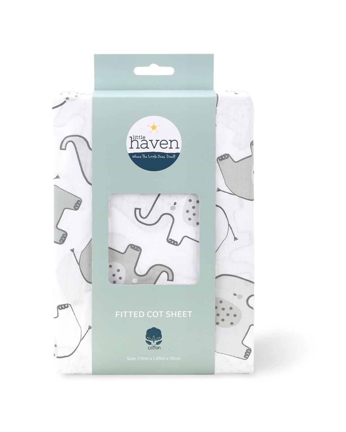 Sold by KG SuperStoreLittle Haven Cot Fitted Sheet Elephant Breathable Cotton Baby Bedding Soft - Multi