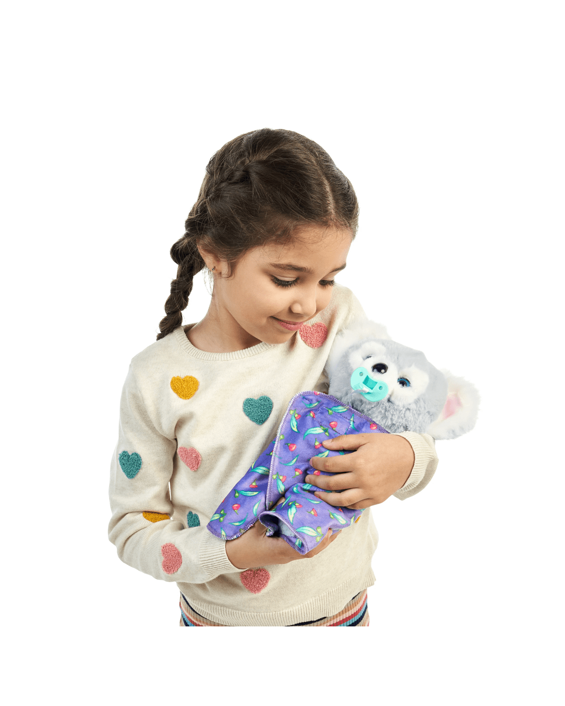 - Includes 1 x plush animal, 1 x pacifier, 1 x blanket and 1 x instruction manual