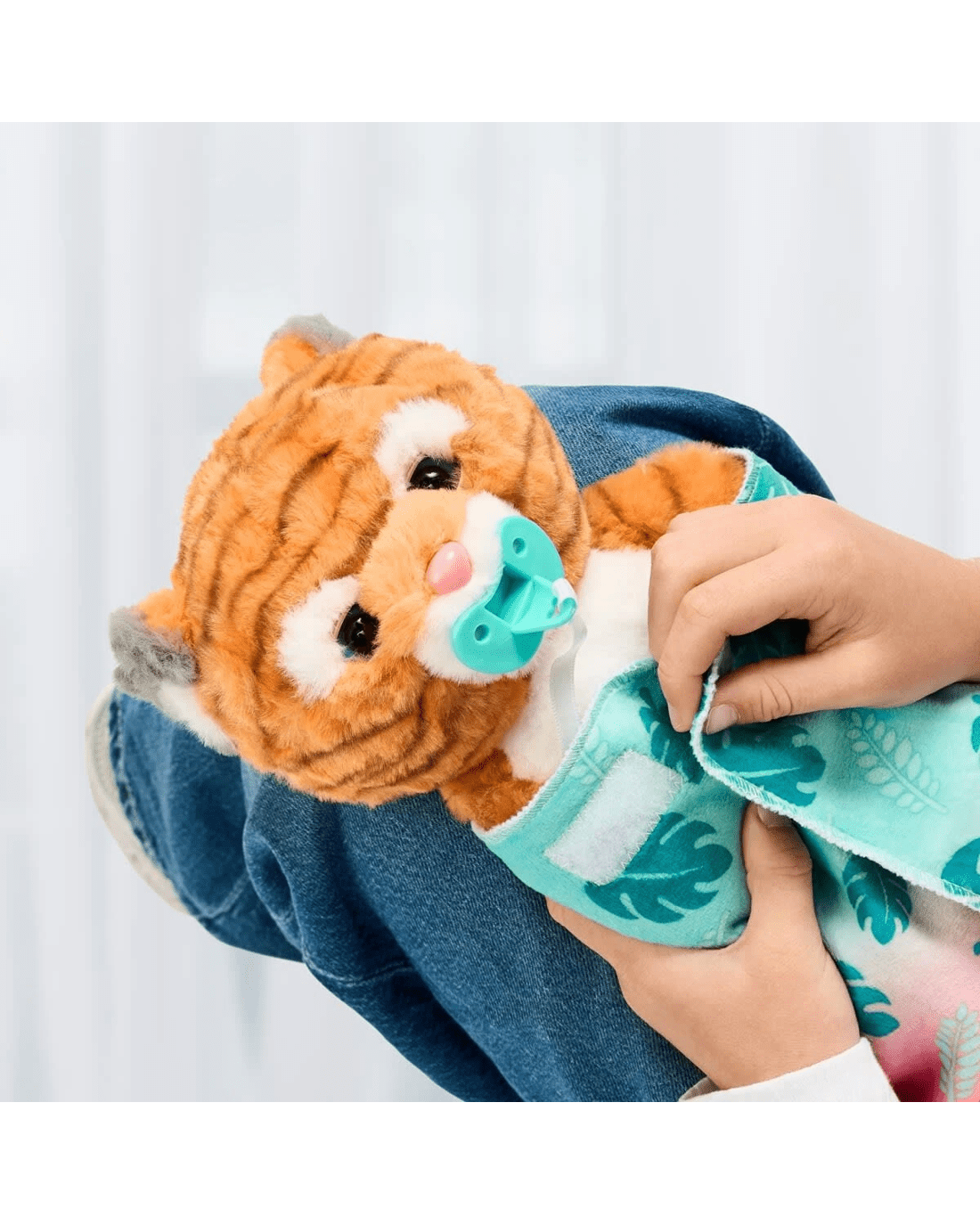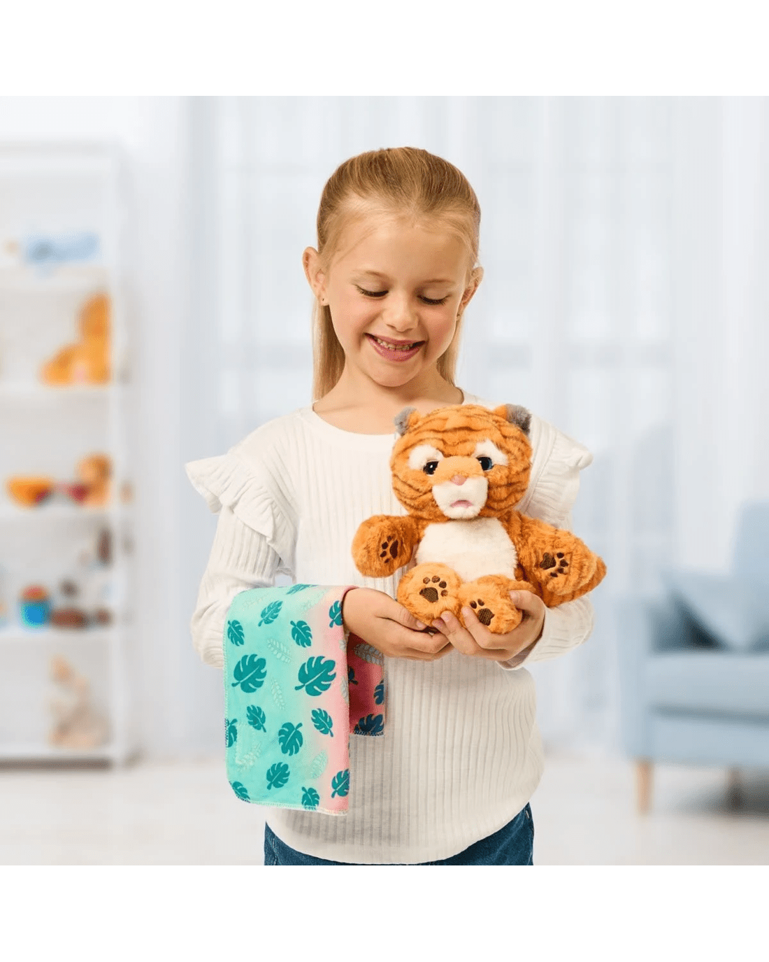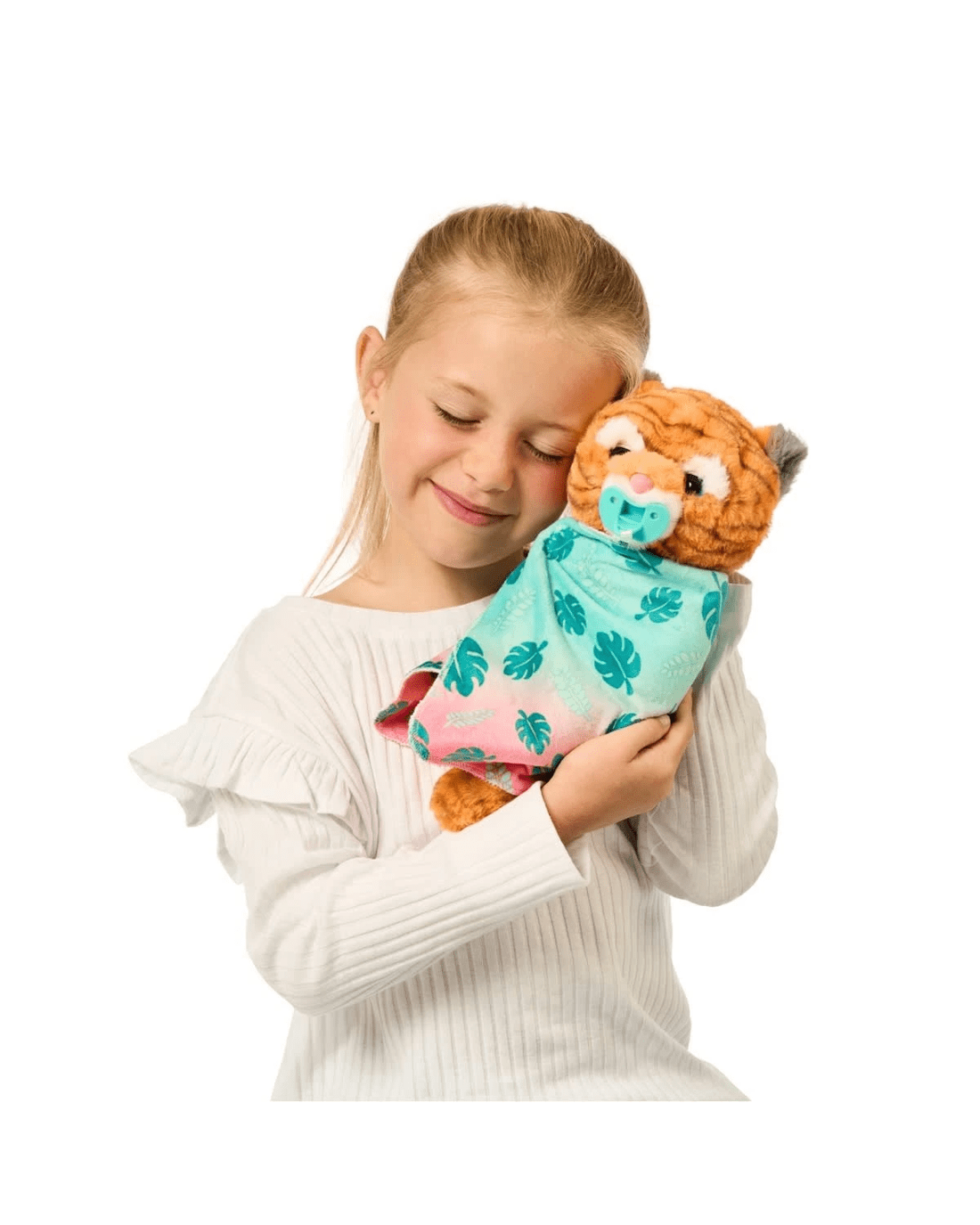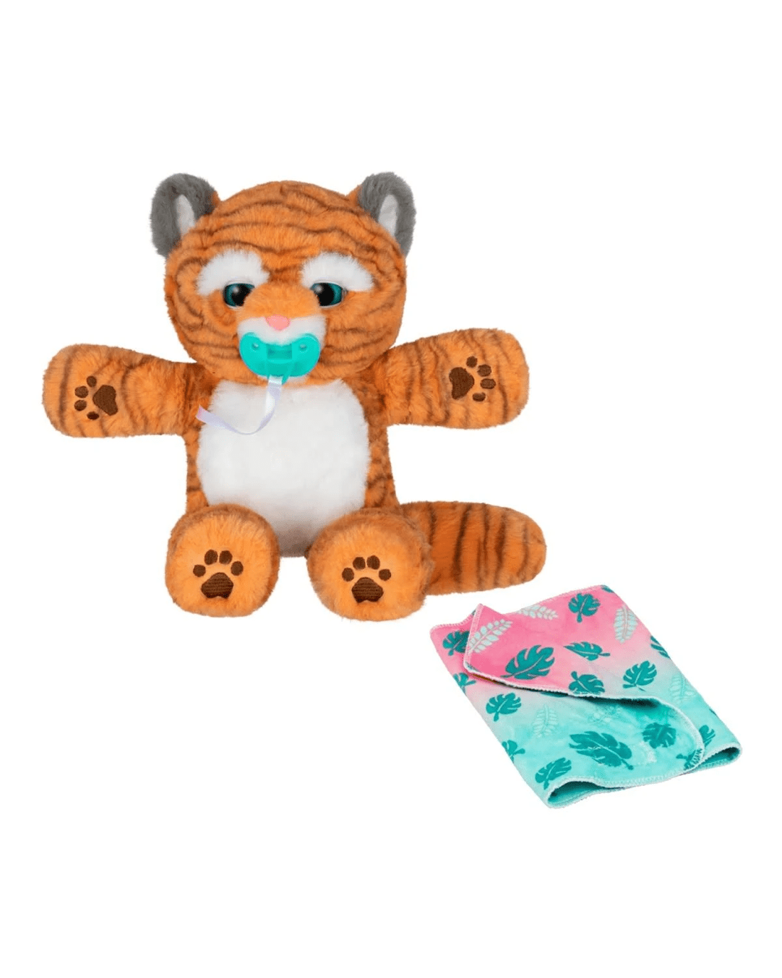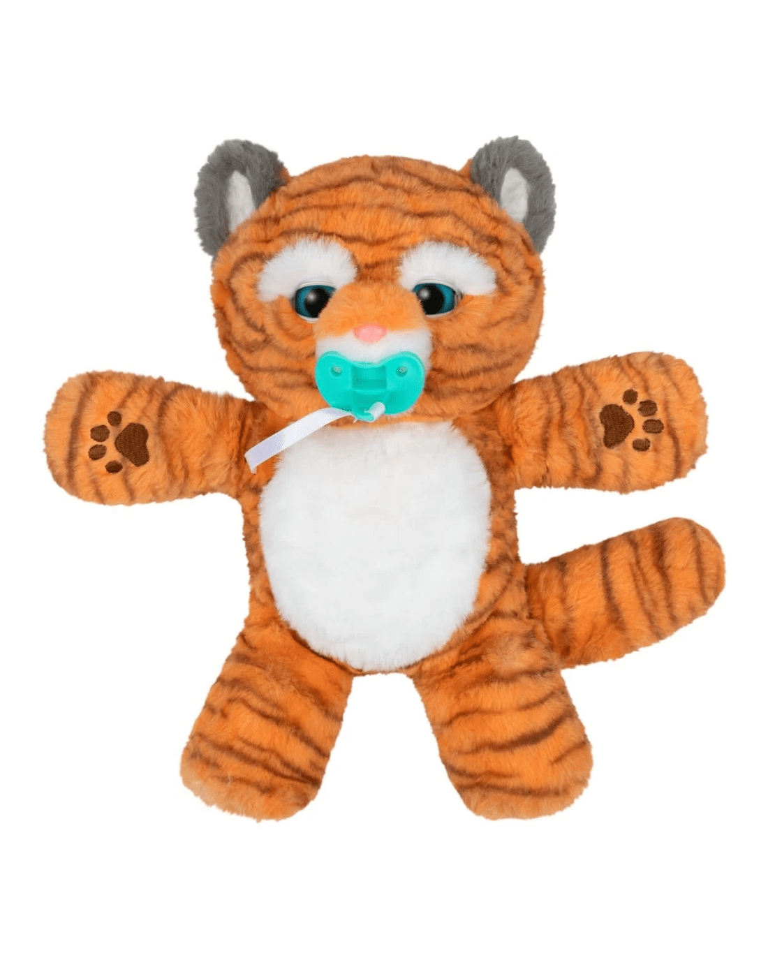 - Includes 1 x plush tiger, 1 x pacifier, 1 x instruction booklet and 1 x blanket