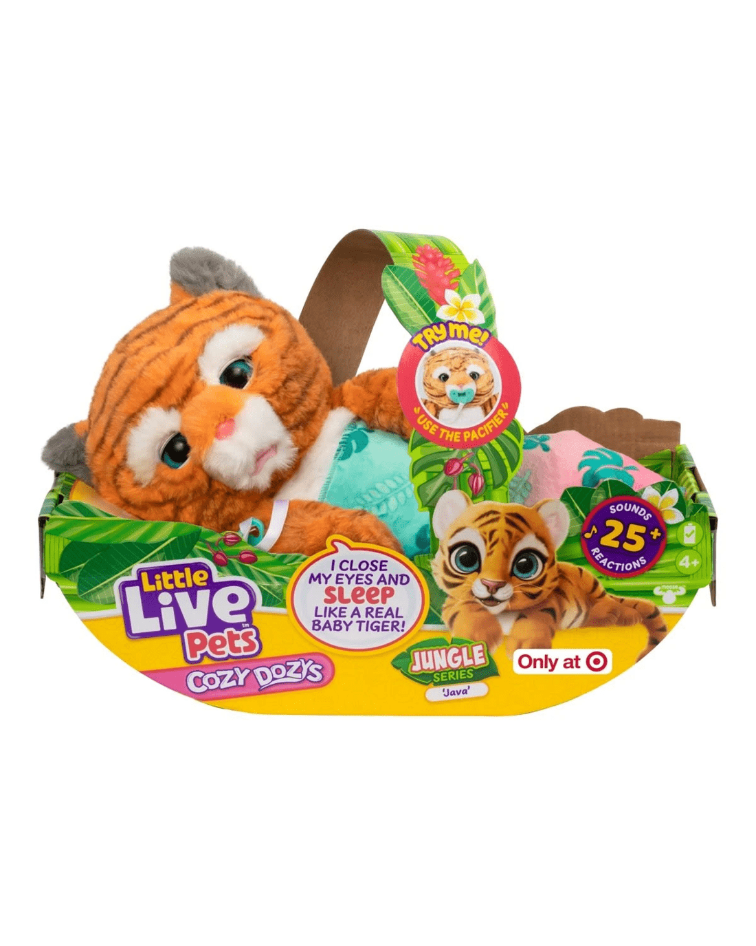 Little Live Pets Cozy Dozys - Jungle Series Java The Tiger is a cuddly, interactive soft plush tiger with over 25 sounds and reactions and the most endearing eye movement.
