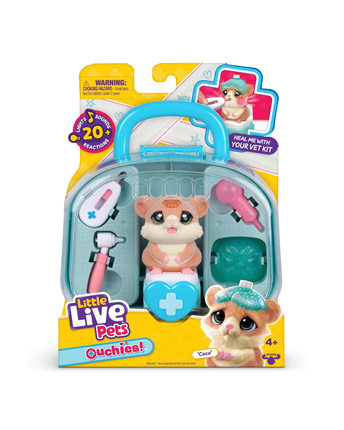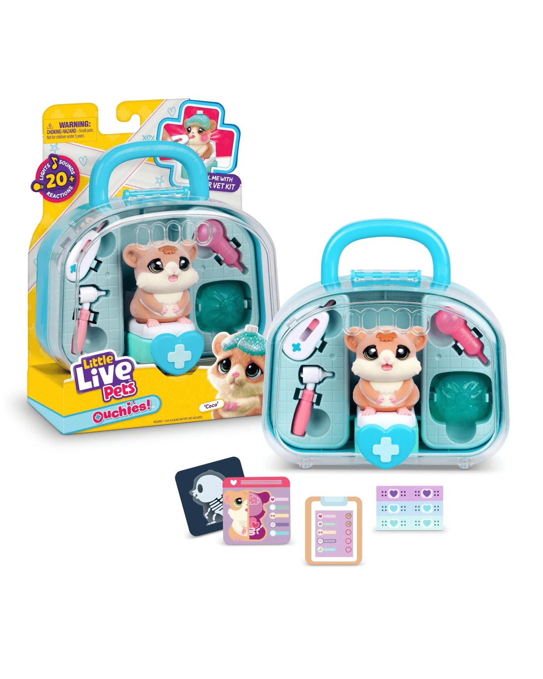 Bring home a Little Live Pets Ouchies Vet Kit and become your pet’s hero. Whether you choose Chirpy the Chick or Coco the Hamster, you’ll enjoy an interactive adventure filled with healing and giggles. Use your vet tools and the included sticker bandages to treat their glowing cheeks and help your adorable friend feel better. Listen for their playful sounds and watch their cheeks light up while you care for every ouchie using the kit’s accessories. Each pet responds differently, making each vet visit exciting and rewarding. The portable vet case means you can care for your pet wherever you go. Make playtime engaging and nurturing, and collect both Chirpy and Coco for even more imaginative fun. Ready to help your pet feel their best? Bring the Little Live Pets Ouchies Vet Kit home today.Features