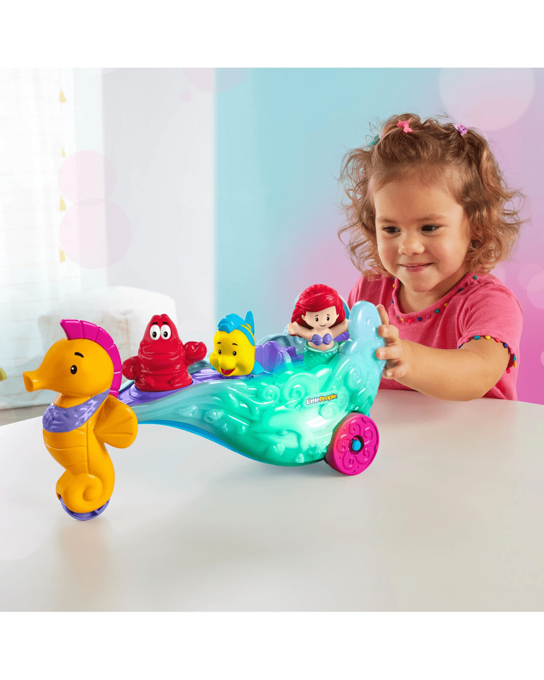 - Playset includes push-along carriage plus Ariel and Flounder figures.