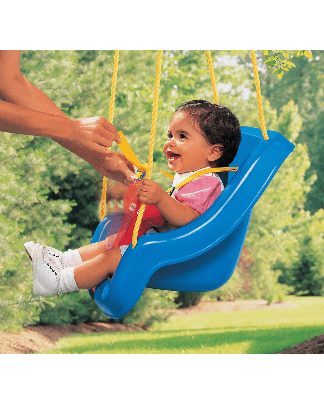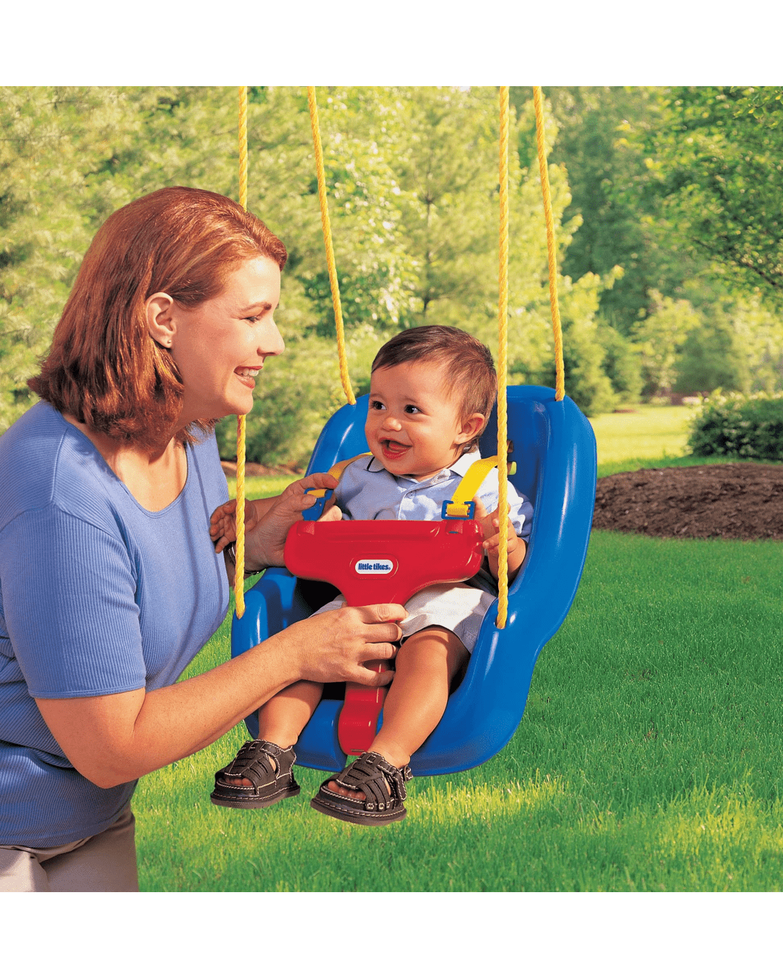 Transform every day into an adventure with the Little Tikes 2-in-1 Snug 'n Secure Swing in a classic blue shade. Thoughtfully made for your child’s comfort and security, this clever swing is ideal for letting youngsters experience the fun of outdoor play while being safely held in place. As your child grows, you can easily adjust by tucking away the safety features, letting them swing with greater independence. Designed to handle energetic use, this swing adds a splash of fun to your garden or play area. Make wonderful memories with your child—add this inviting swing to your family space today.