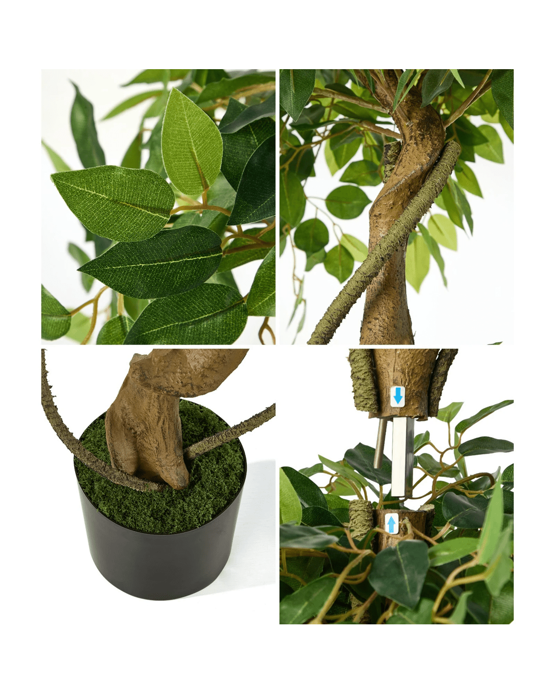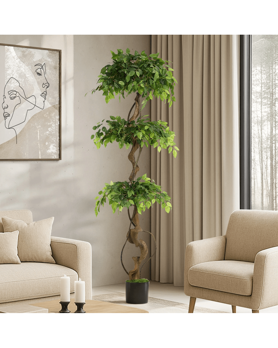 Livsip 180cm Artificial Ficus Tree Large Twisted Ficus - Green