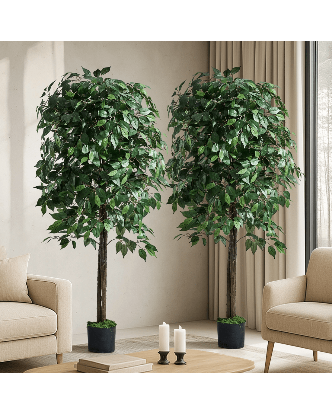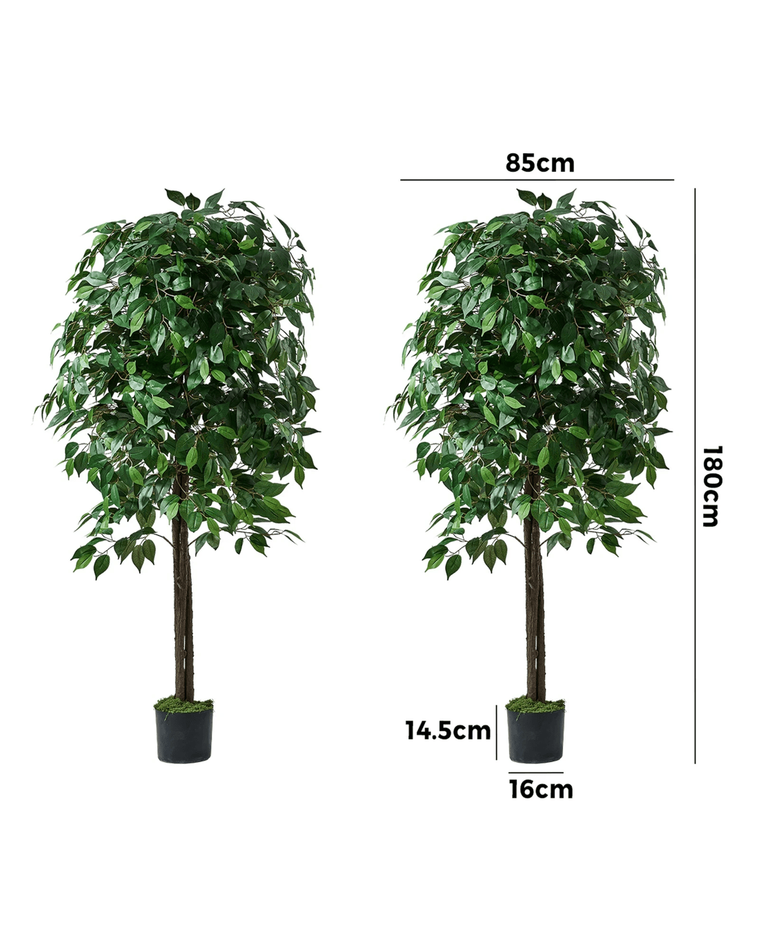 Livsip 2 Pack Artificial Ficus Tree Faux Potted Plant 180cm - Green