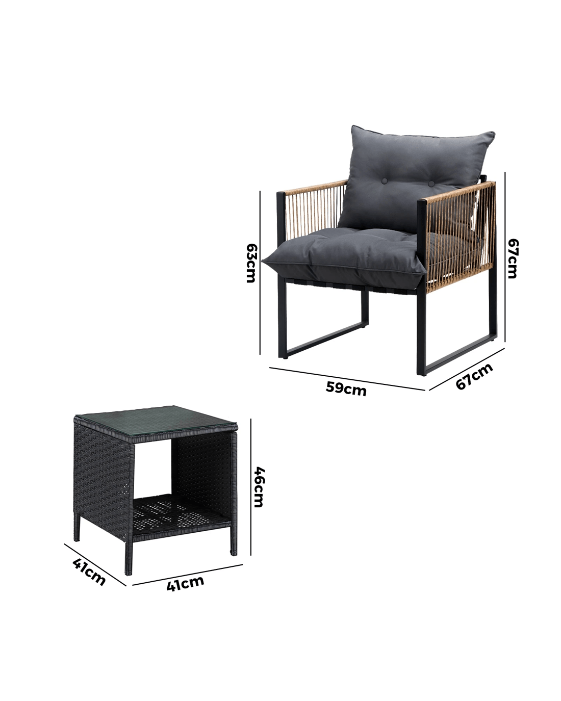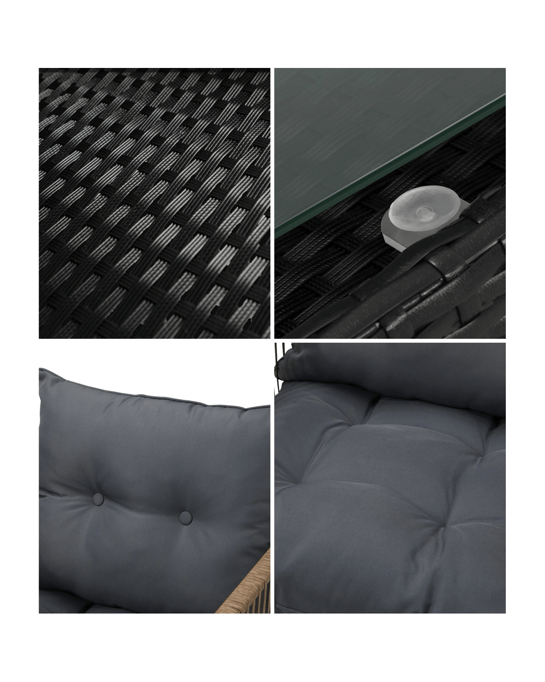 Sit back and feel the comfort of the supportive chairs. Have your lattes and savour that delicious food platter served on the delightful rattan side table. Not enough space on the side table glass top? There隆炉s more real estate under the side table with a handy shelf for more delectable goodies and drinks to while the moments away. Such a picturesque scenario to share with a close friend or loved ones.