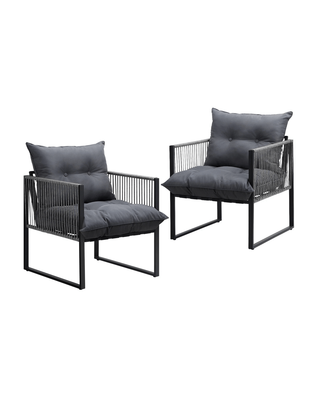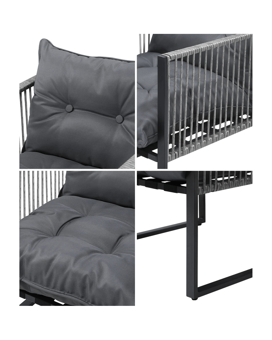 Stylish. Contemporary. Cool. Such as the stringed PE wicker embellishments that add plenty of charisma and character to the chair. It has all the hallmarks of chic outdoor furniture that resonate with your discerning lifestyle. Sit back and feel the comfort of the well-padded cushioned seat and backrest and relax your arms on the smooth and supportive armrests. Have your lattes, your favourite brews and savour some yummy munchies to while the moments away.