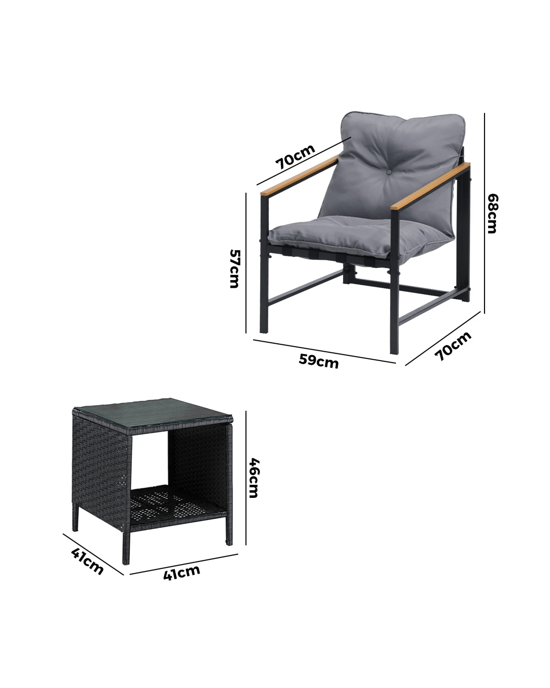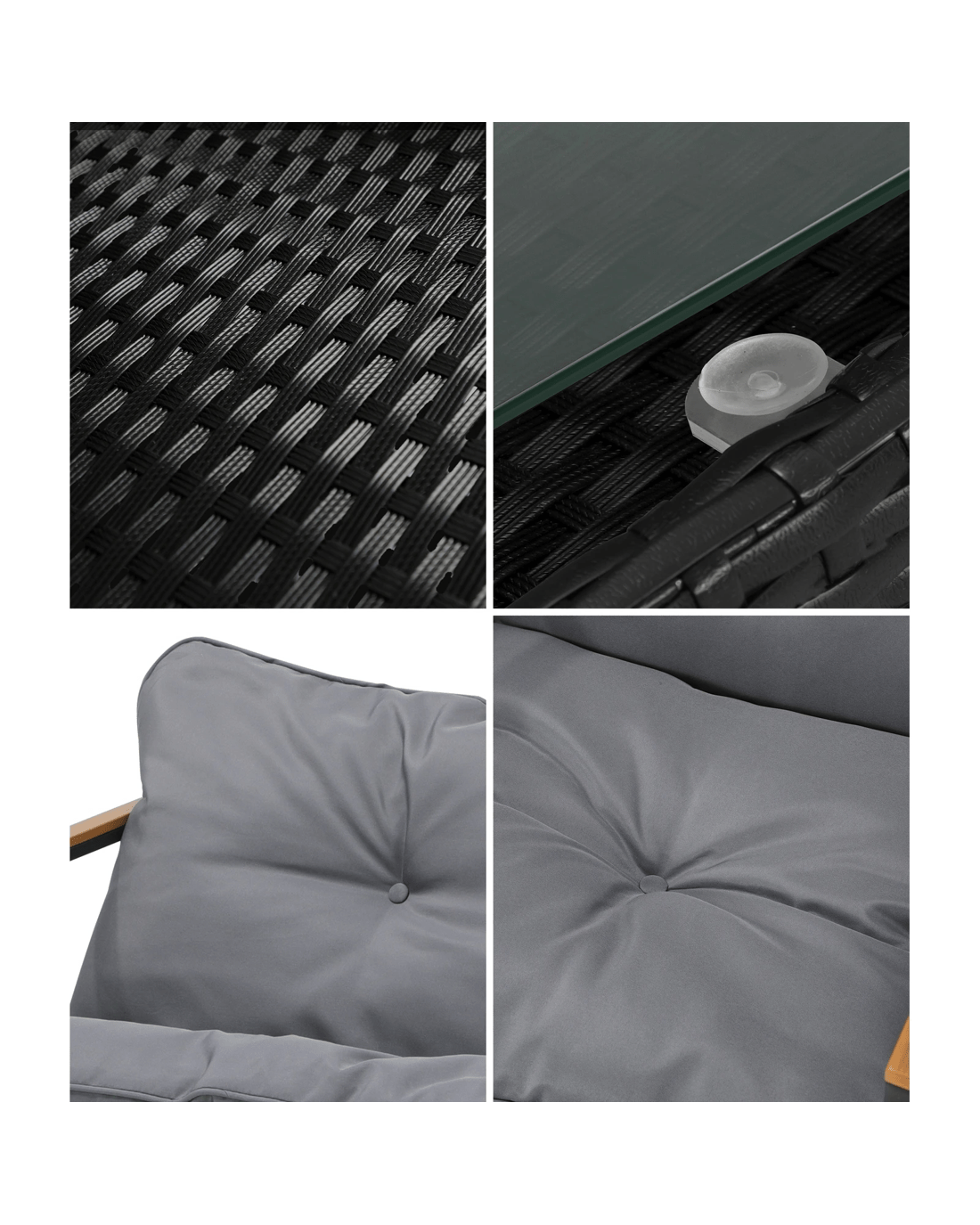 Sit back and feel the comfort of the supportive chairs. Have your lattes and savour that delicious food platter served on the delightful rattan side table. Not enough space on the side table glass top? There隆炉s more real estate under the side table with a handy shelf for more delectable goodies and drinks to while the moments away. Such a picturesque scenario to share with a close friend or loved ones.