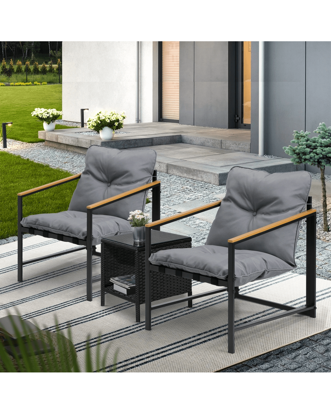 Livsip 3 Piece Outdoor Patio Set Lounge Setting Garden Furniture Rattan Table - Multi