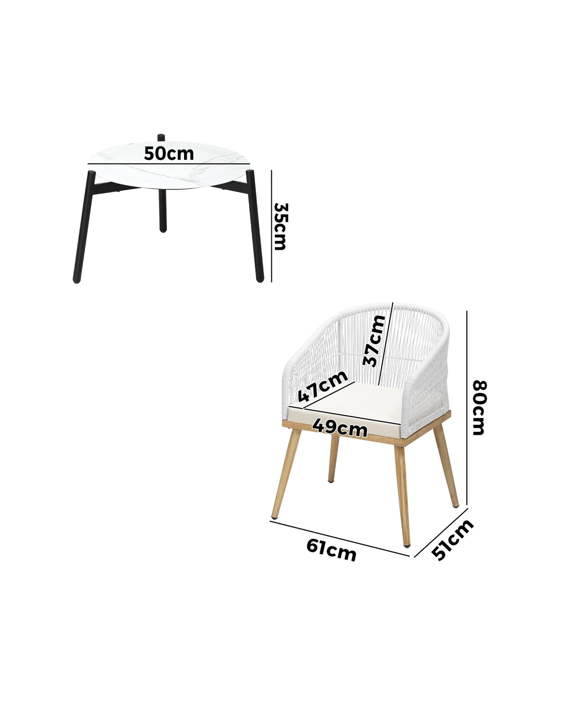 Livsip 3 Piece Outdoor Patio Setting Bistro Set Lounge Furniture Sets 50cm Table - Multi