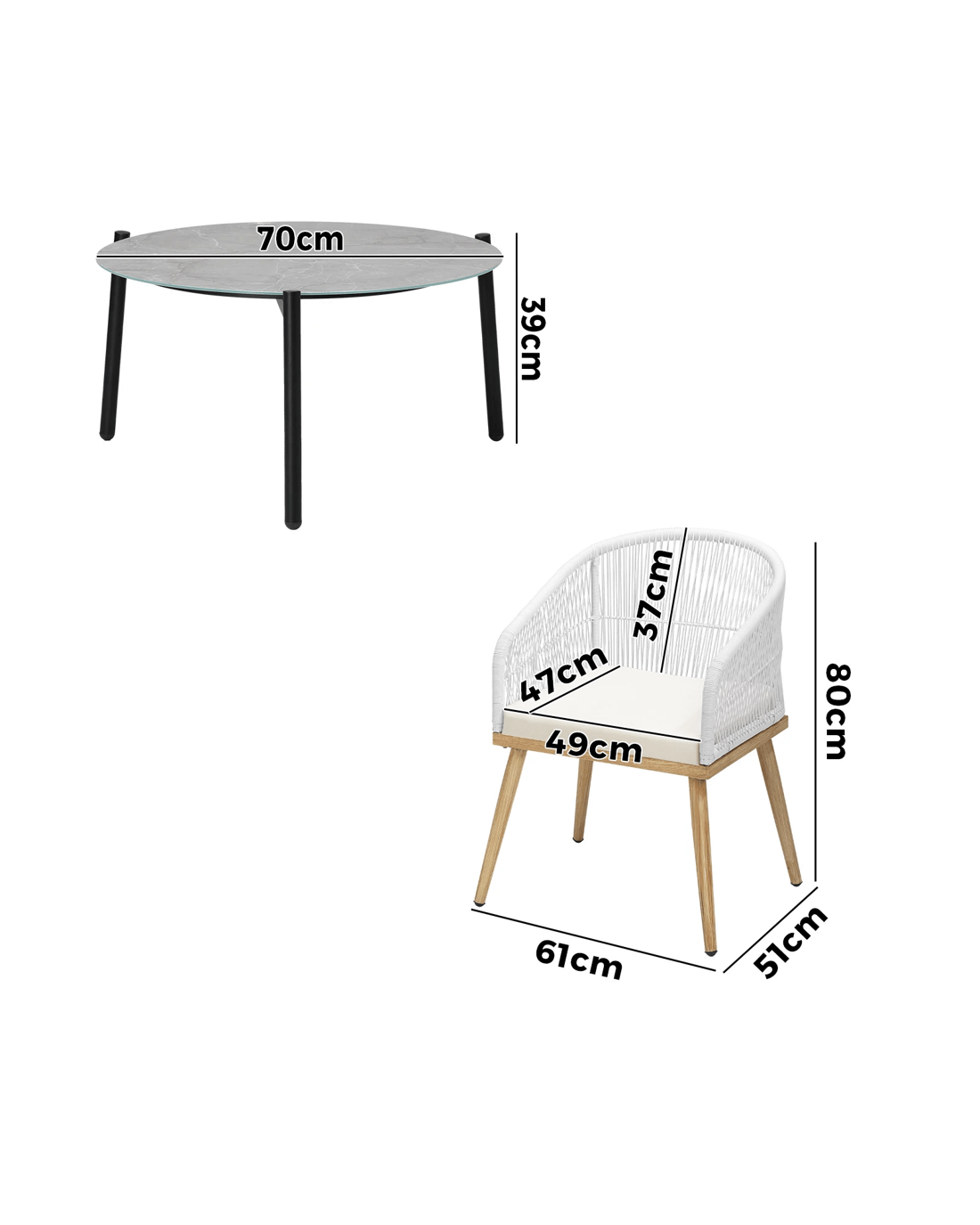 Livsip 3 Piece Outdoor Patio Setting Bistro Sets Lounge Furniture Sets 70cm Table - Multi