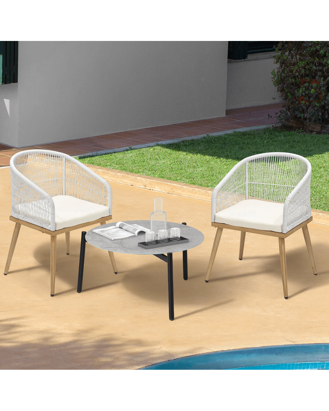 If you are looking for a classy and sophisticated outdoor set that adds a touch of marble-resque aesthetics to its setting, then this Livsip Outdoor Set is well within your radar of stylish furniture. None the ordinary and everything the exceptional.