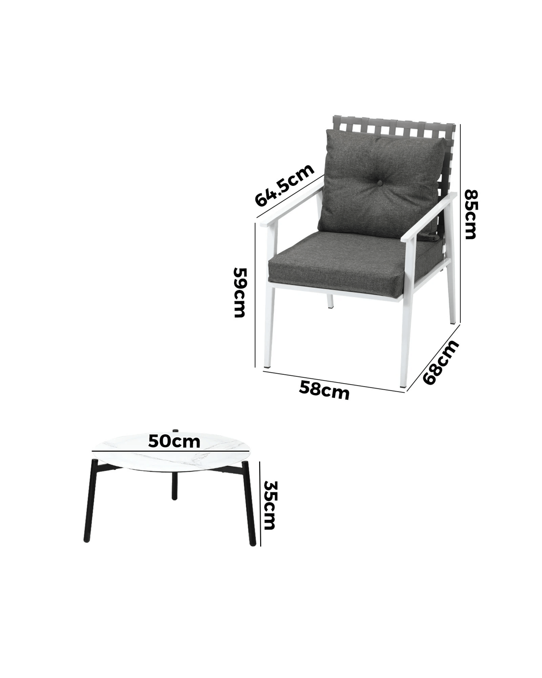 Armchair size: 58x 68x 85cm (W x D x H)