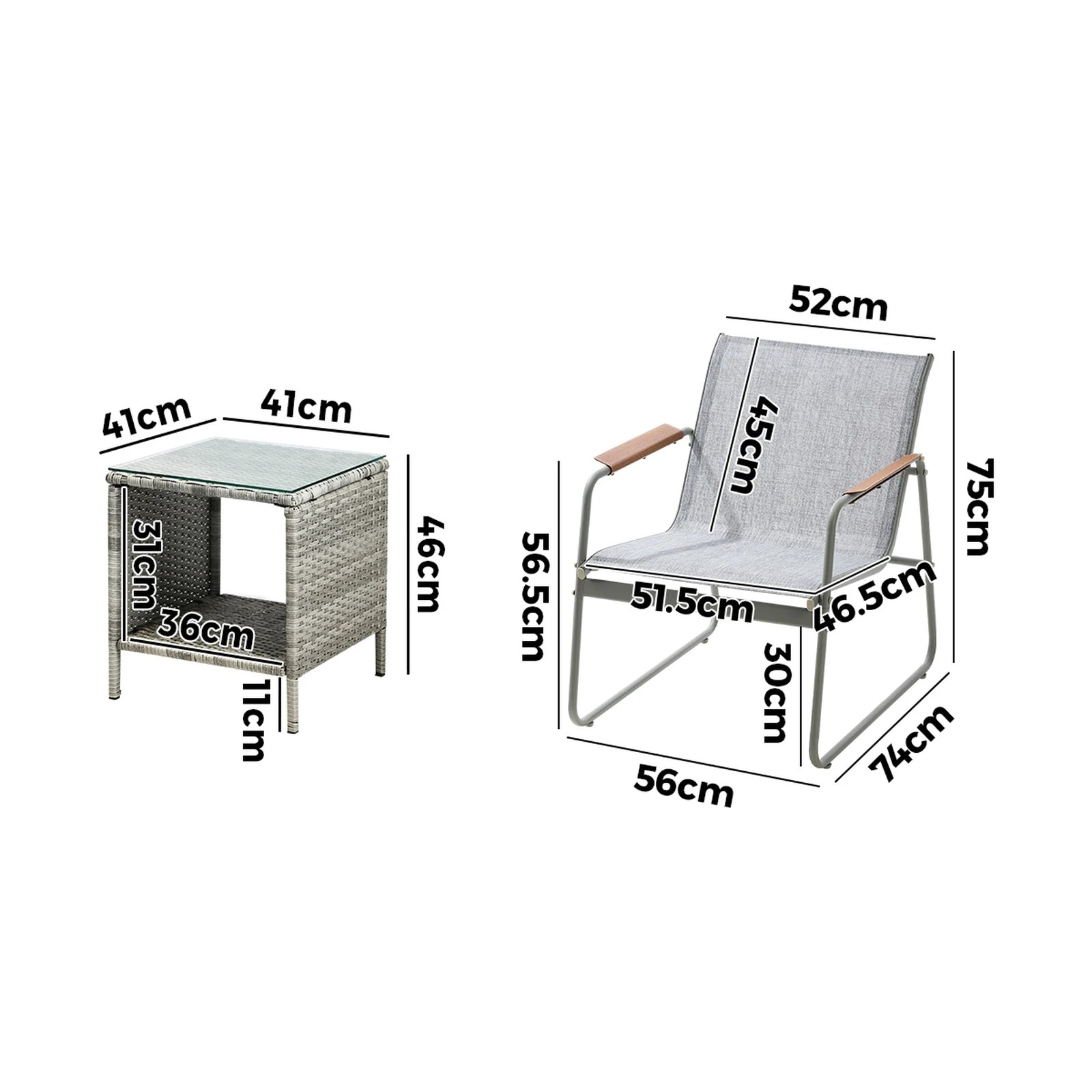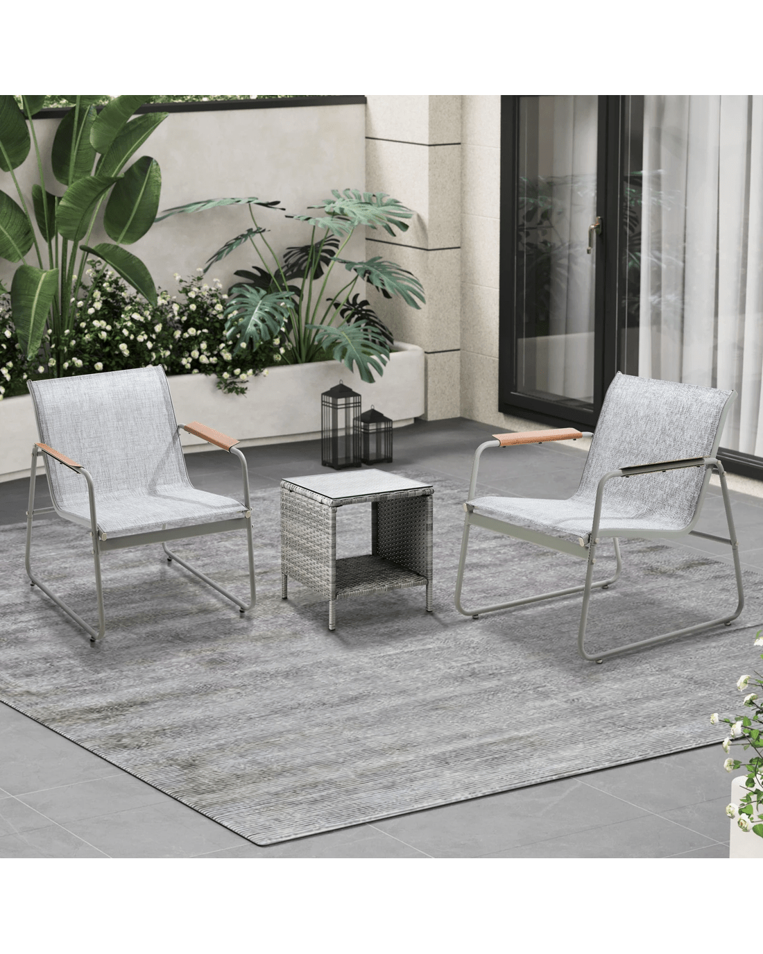 Livsip 3PCS Outdoor Bistro Set Patio Garden Furniture Chair Side Table PE Wicker - Multi