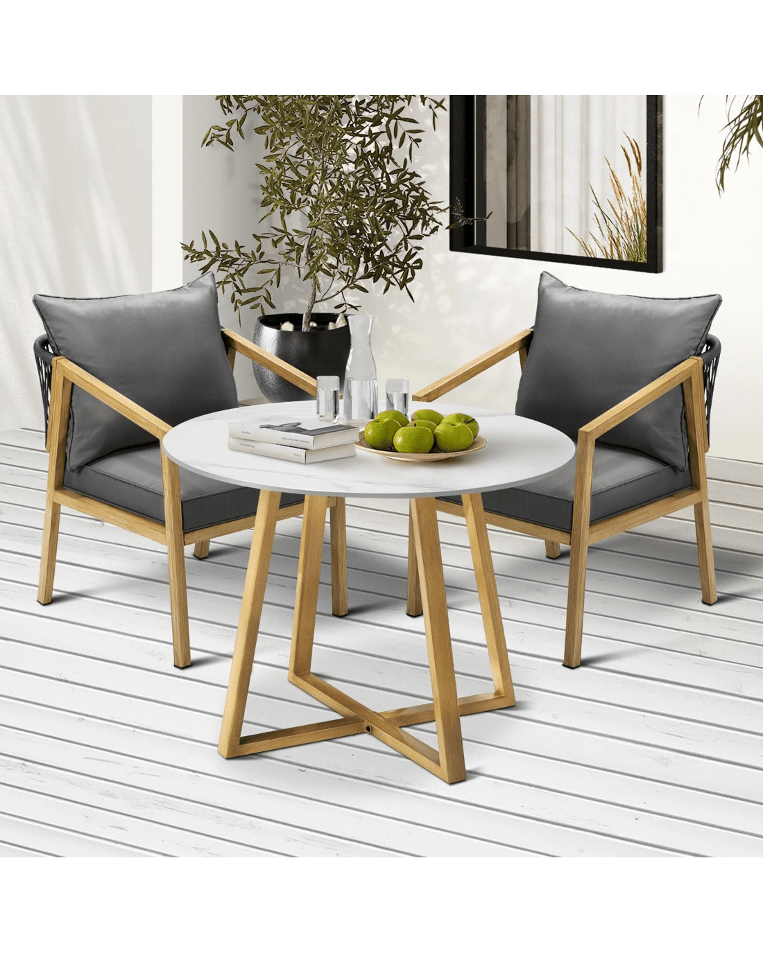Sold by Kamprad's Oikos 1943Livsip 3pcs Outdoor Dining Setting 90cm Table Lounge Chairs Patio Furniture Set - Multi