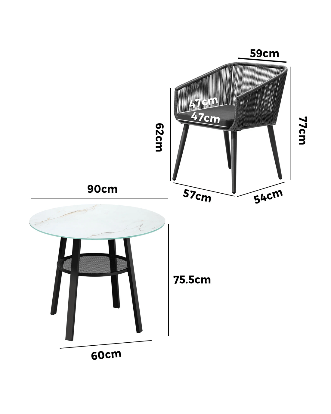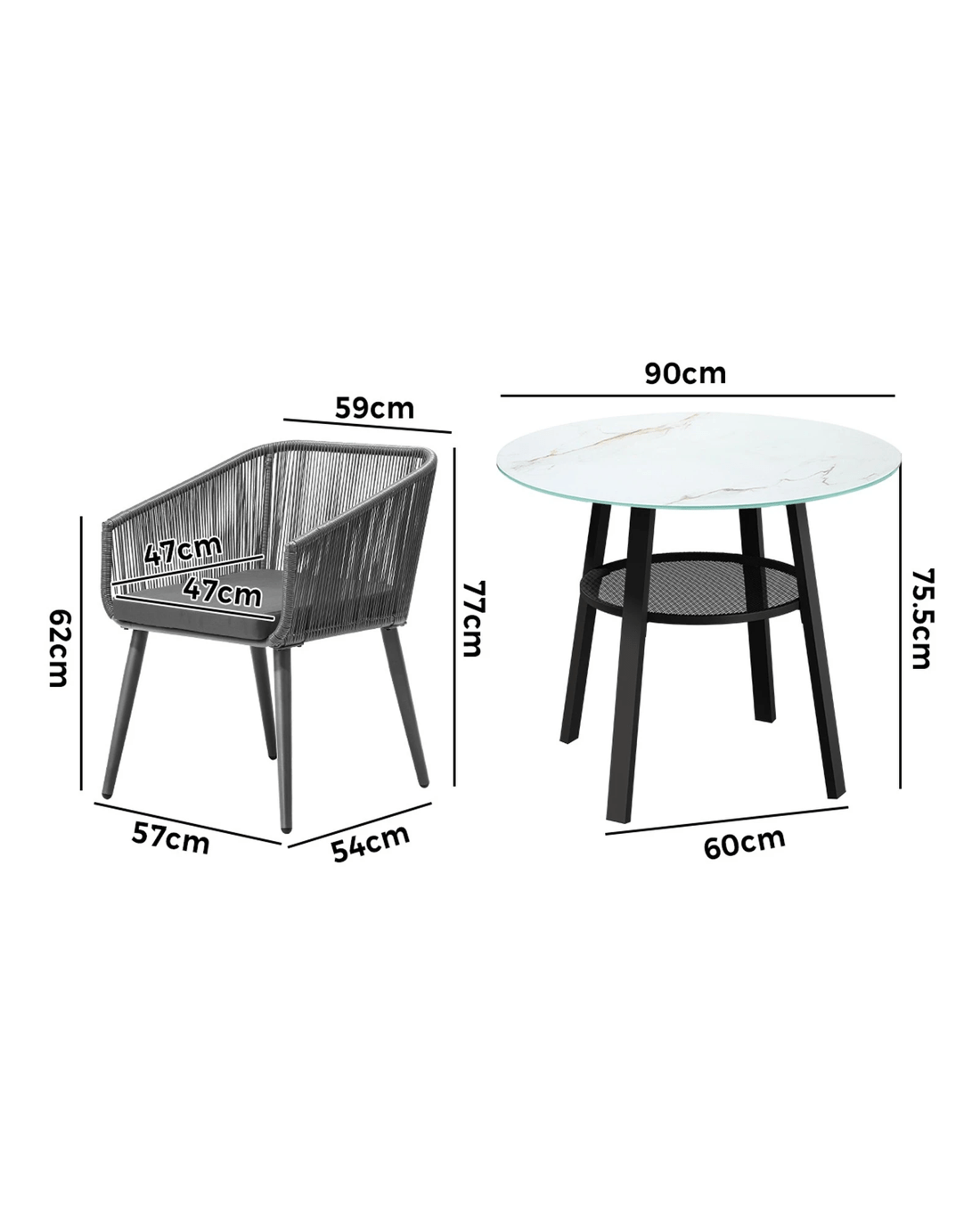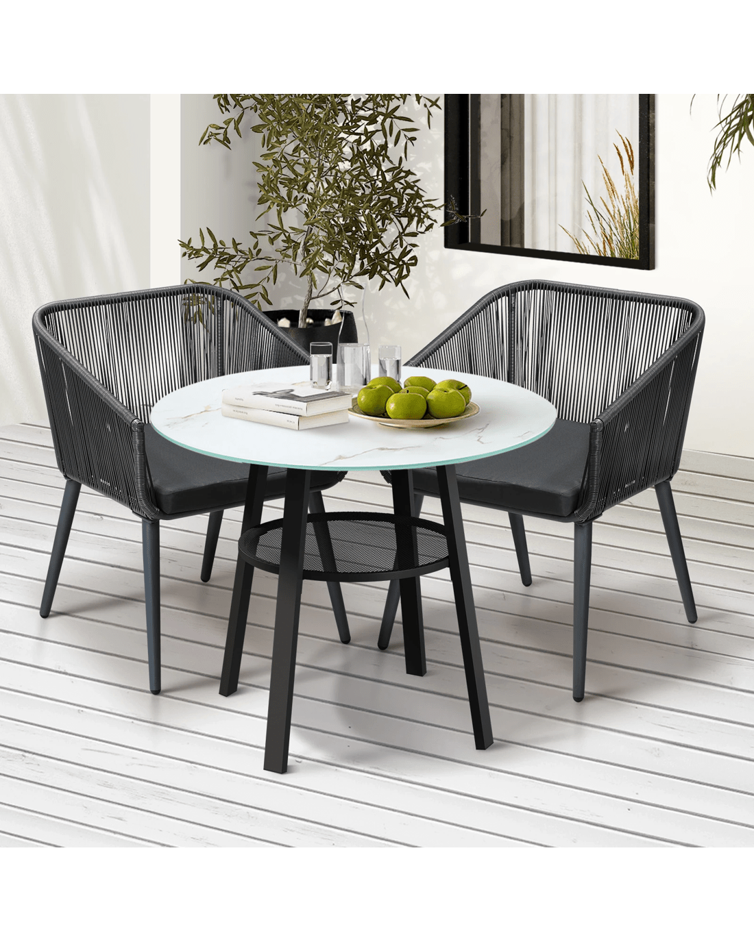 Livsip 3pcs Outdoor Dining Setting Marble-style Table Patio Furniture Bistro Set - Multi
