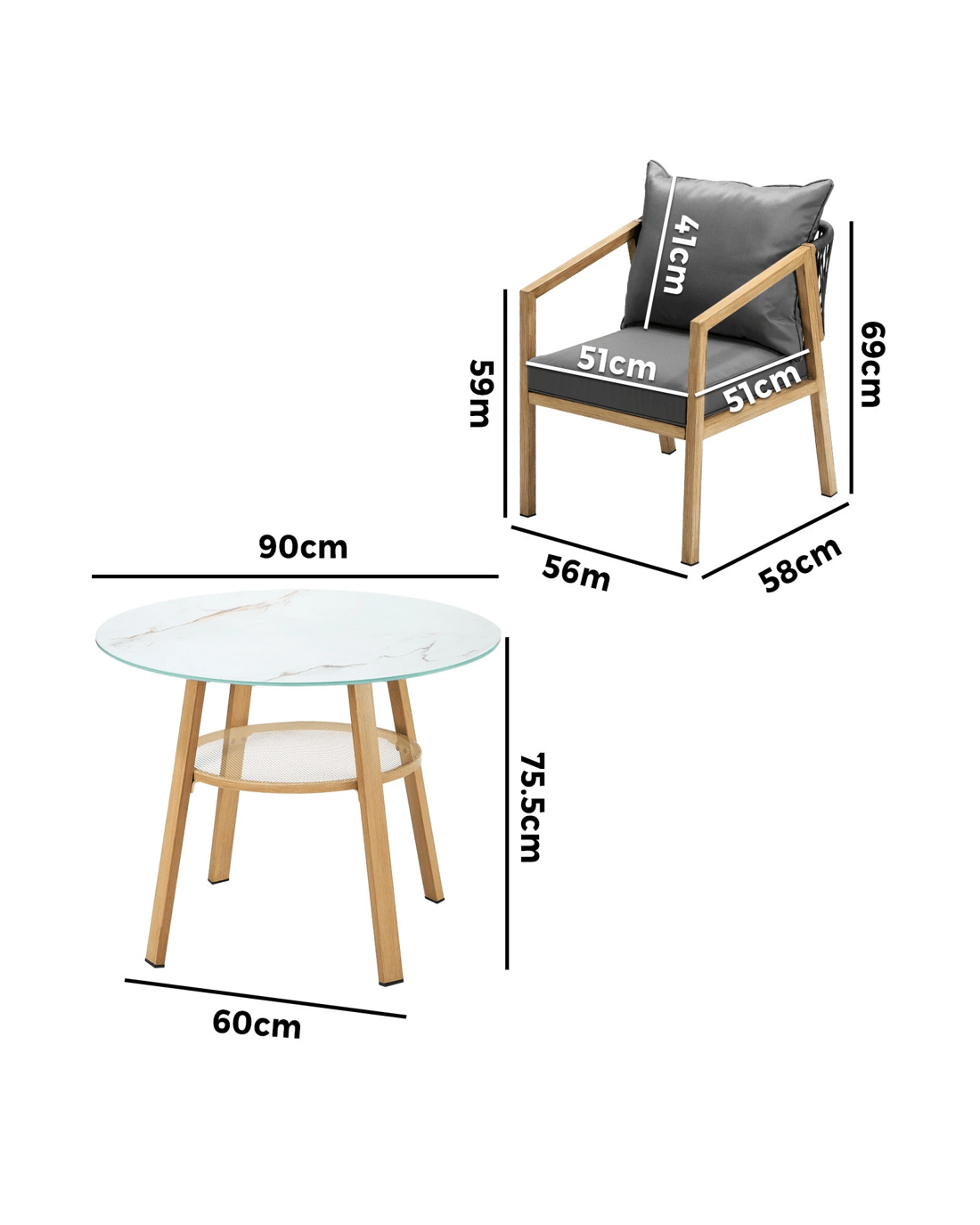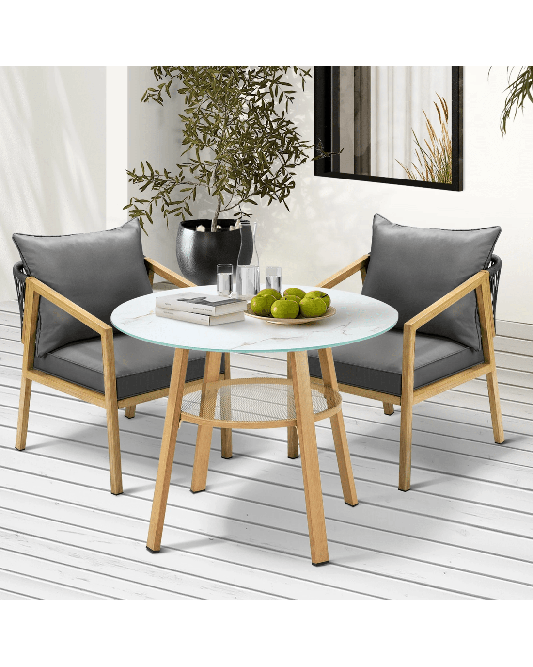 Livsip 3pcs Outdoor Dining Setting Patio Furniture Set 90cm Table Lounge Chairs - Multi