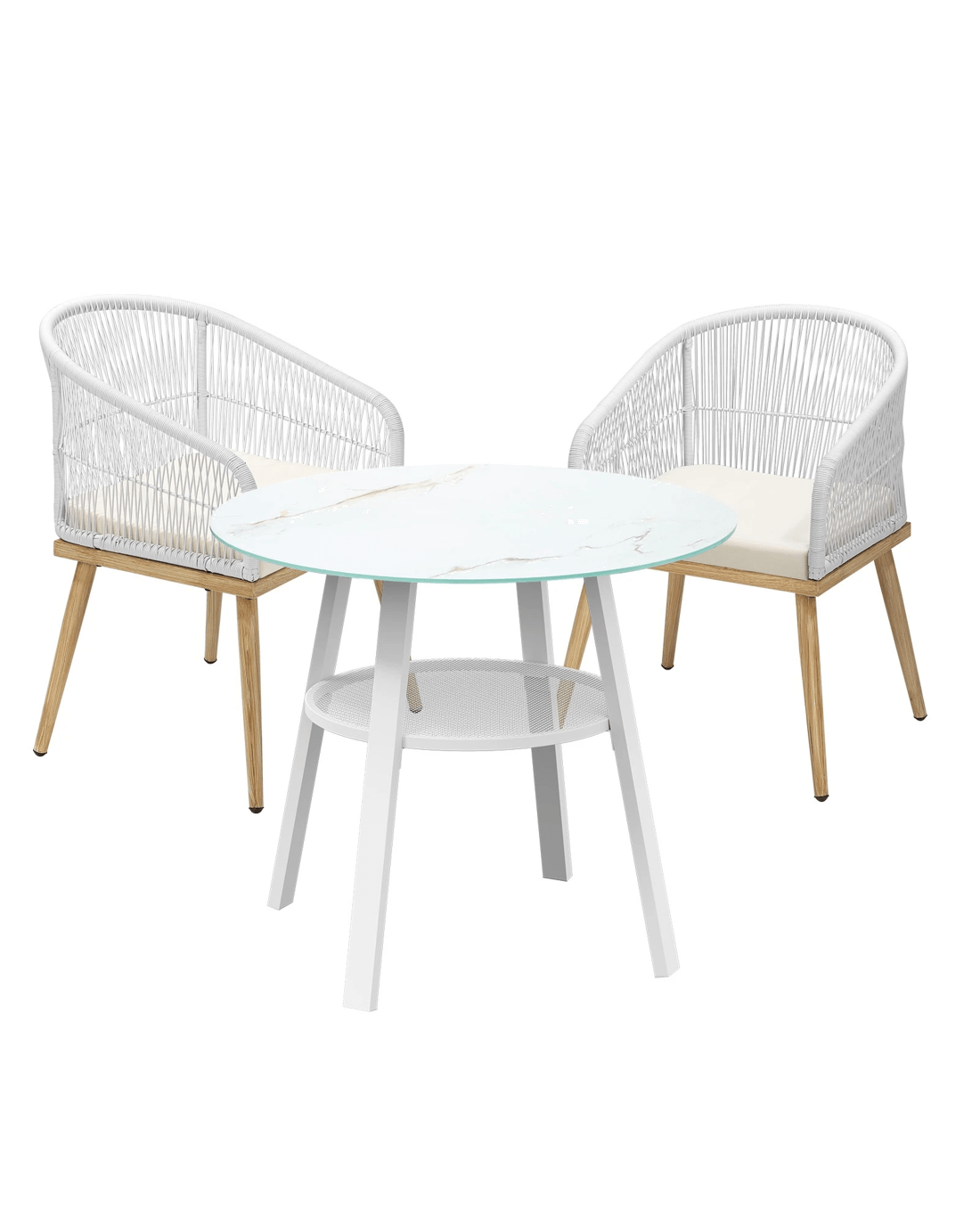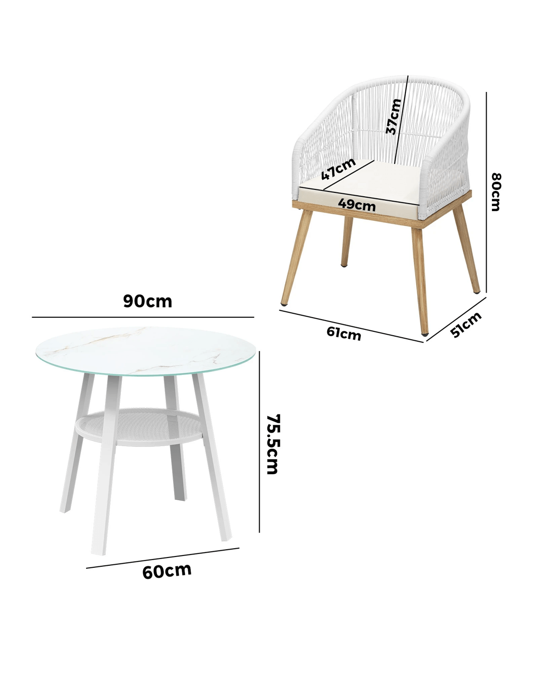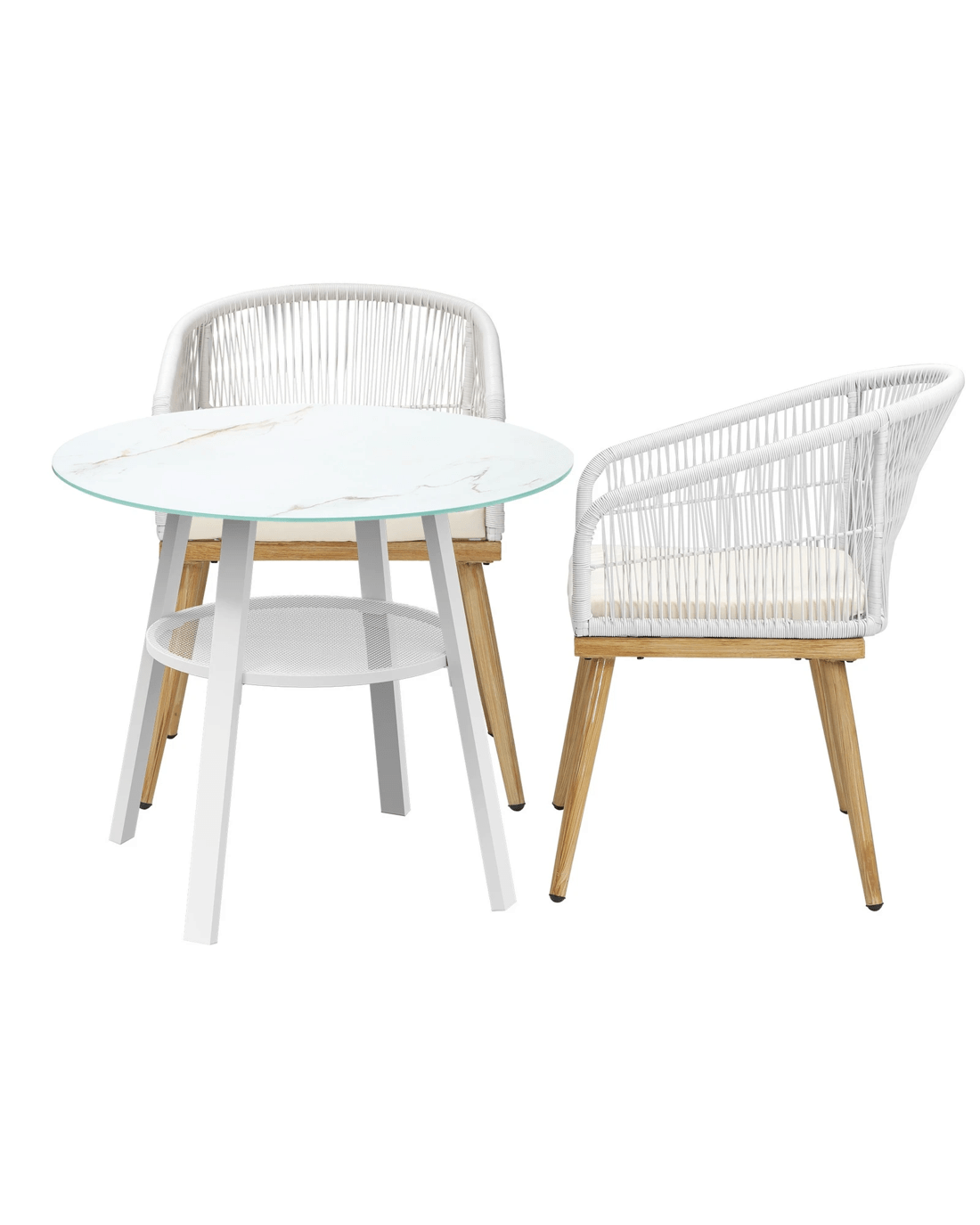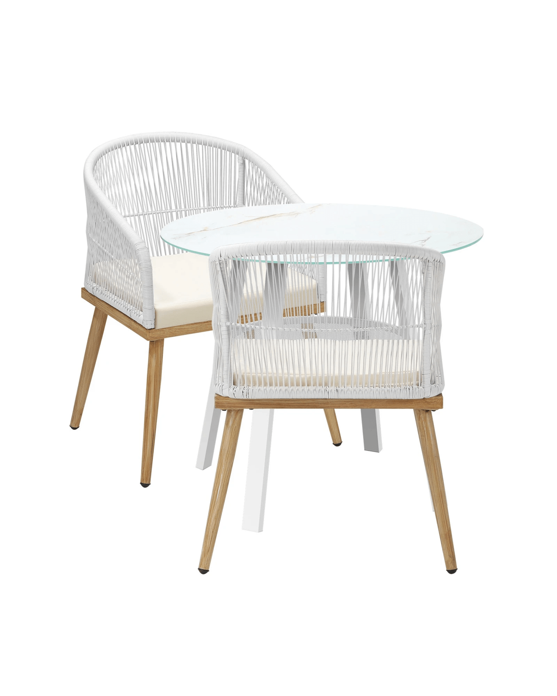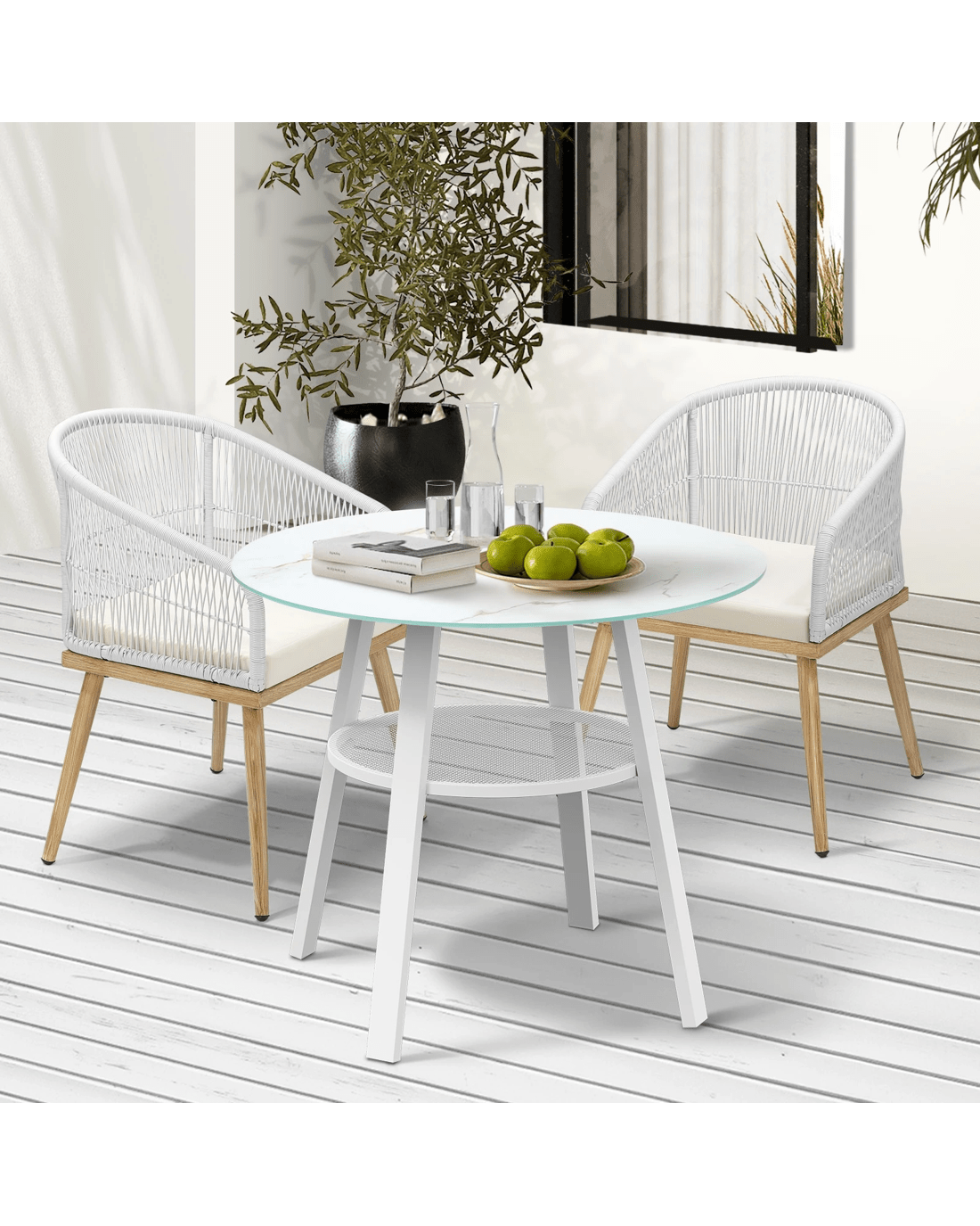 Living life to the fullest. Chilling out under the sun, moon and stars. Alfresco dining with friends, family or just with your precious me-time. Simply pursuing and enjoying life that is meant to be. And the Livsip Outdoor Dining Set is ready to be there at home with you. Stylish. Contemporary. Beautiful. For the dining table, a white ceramic tempered glass top with handy storage shelf beneath. And for the dining chairs, equally attractive pieces that go well with the table. The set has all the attributes of chic outdoor furniture that resonate with your discerning lifestyle. Have your lattes, your favourite brews and savour delectable cuisines and other gastronomical delights. Eat, drink and be merry! But how does the dining set stand up to the harsh and sometimes fickle Australian weather? No worries mate as it is all weather-resistant, chairs and table, with strength and durability for robust use. Not least, this dining setup also looks fabulous with any indoor eclectic styling ideas that you may have. Convinced that this delightful outdoor package is for you? Click on the Buy option and soon you will be feasting to your (and many others too) heart's content at the Livsip Outdoor Dining Set day and night, night and day, in every season.