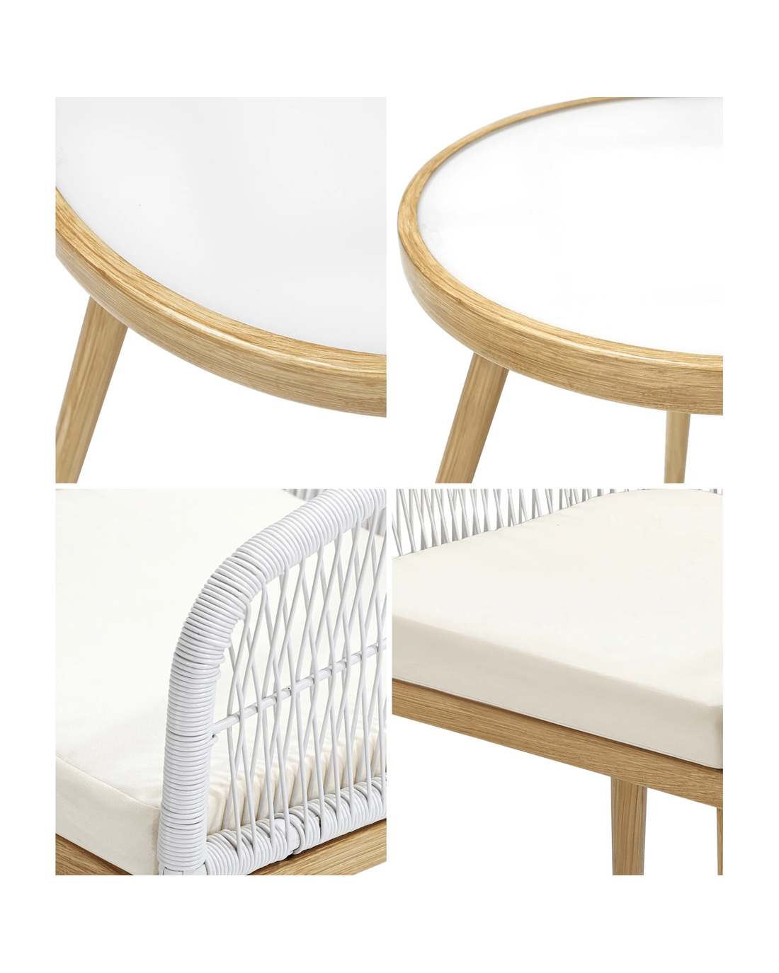Maintenance of this outdoor set is a breeze. The materials used are resistant to stains, mold, and mildew, making it easy to keep the furniture looking its best with minimal effort. Simply wipe down the surfaces or remove the cushion covers for easy cleaning and maintenance.