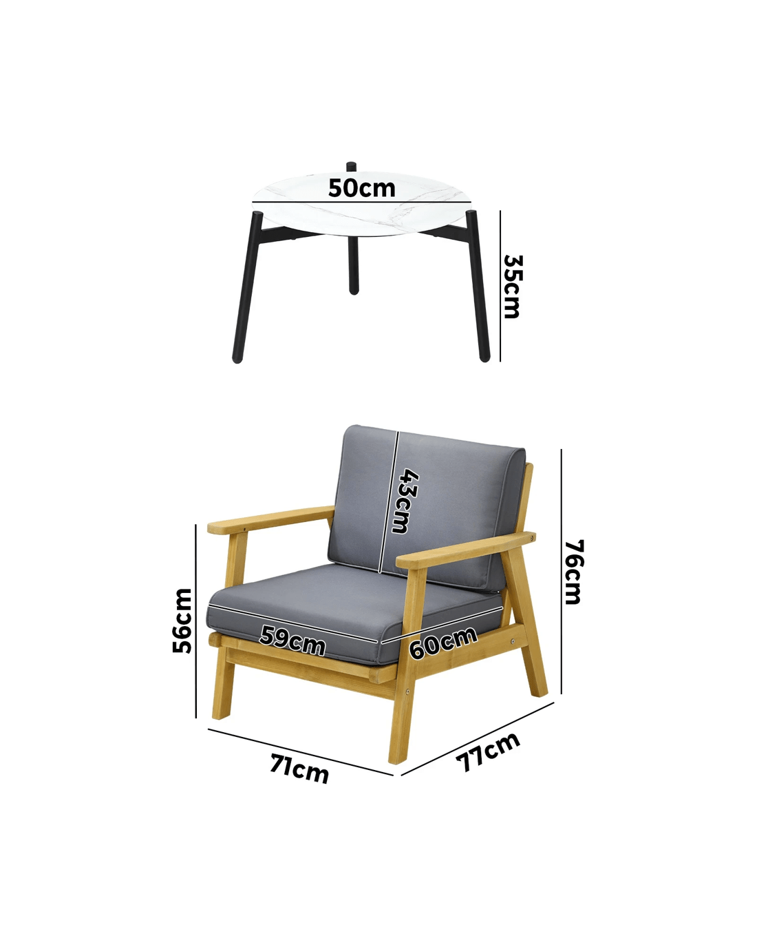 - 71cm x 77cm x 76cm