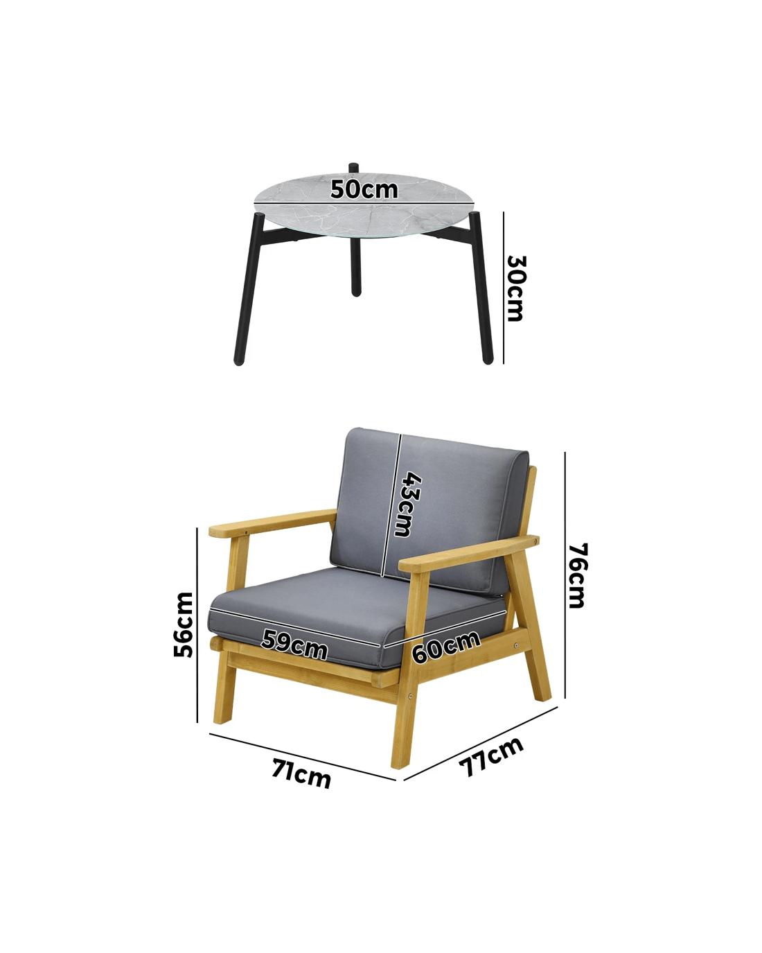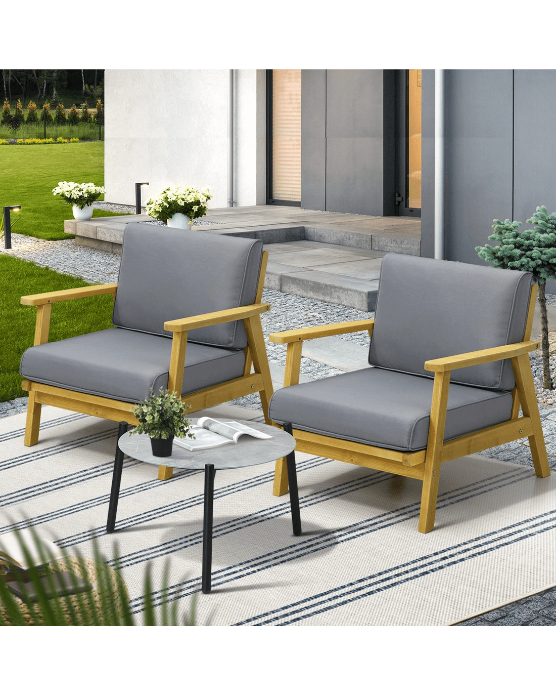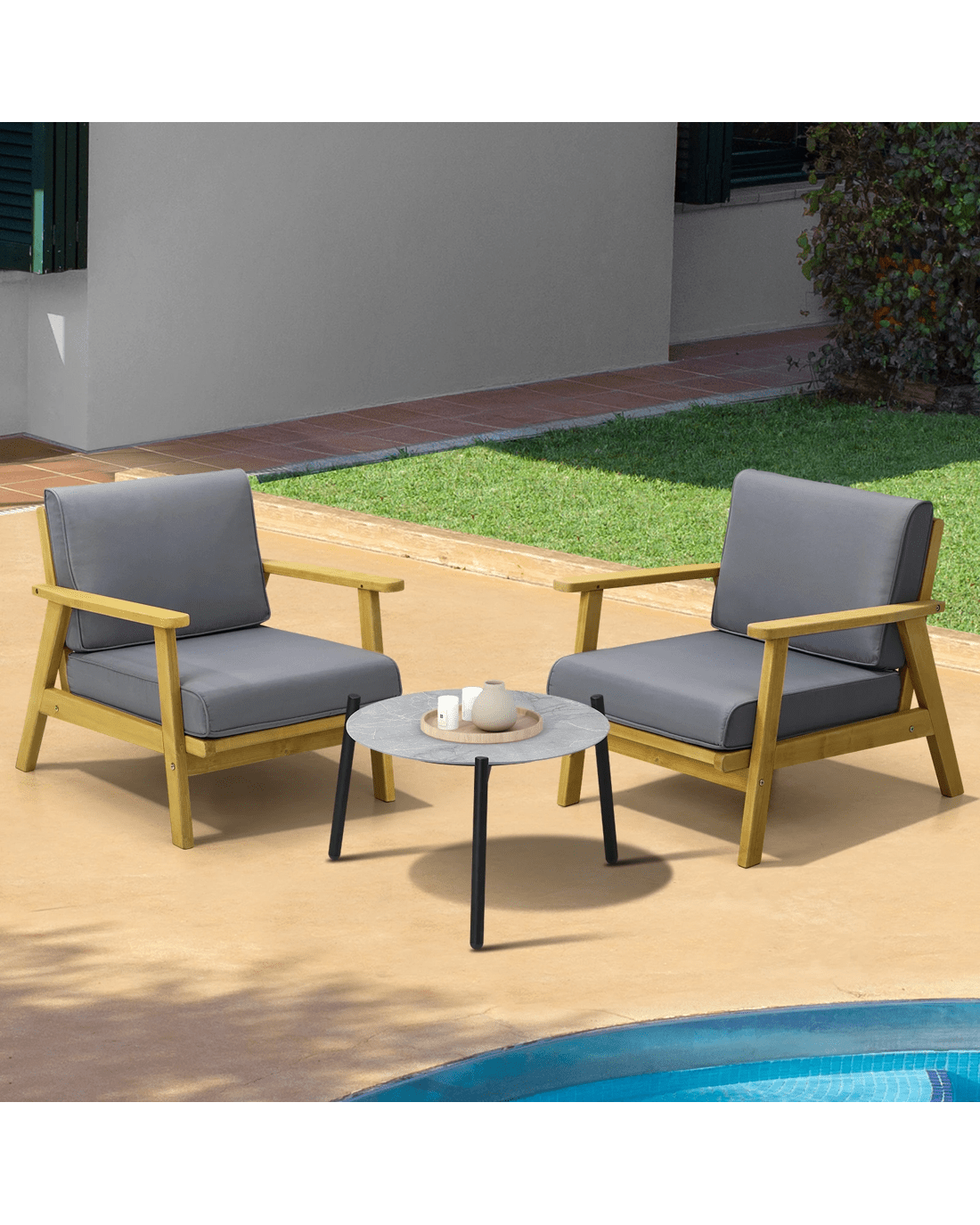 Sold by Kamprad's Oikos 1943Livsip 3pcs Outdoor Lounge Set Patio Furniture Setting 50cm Coffee Side Table - Multi