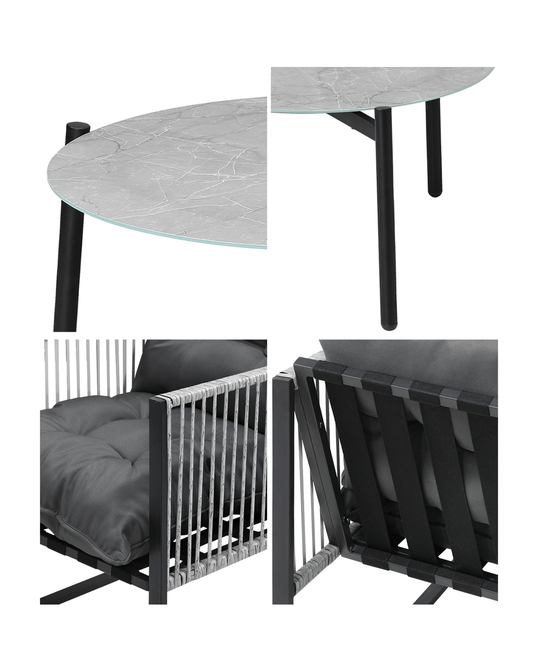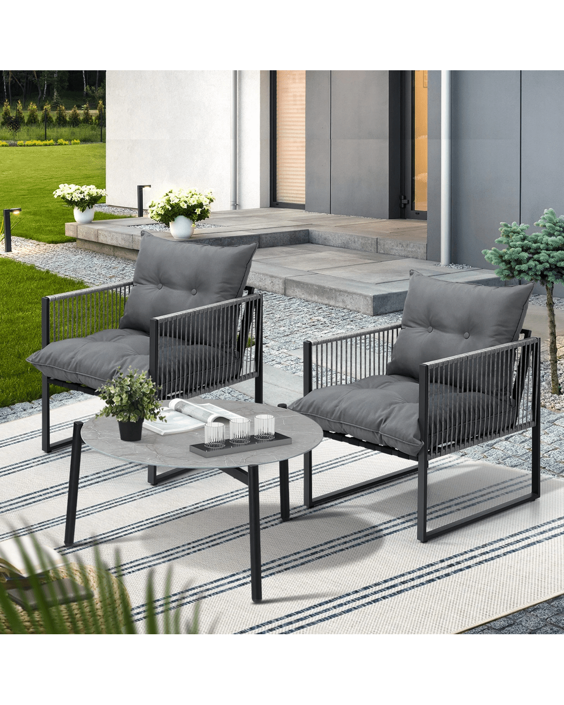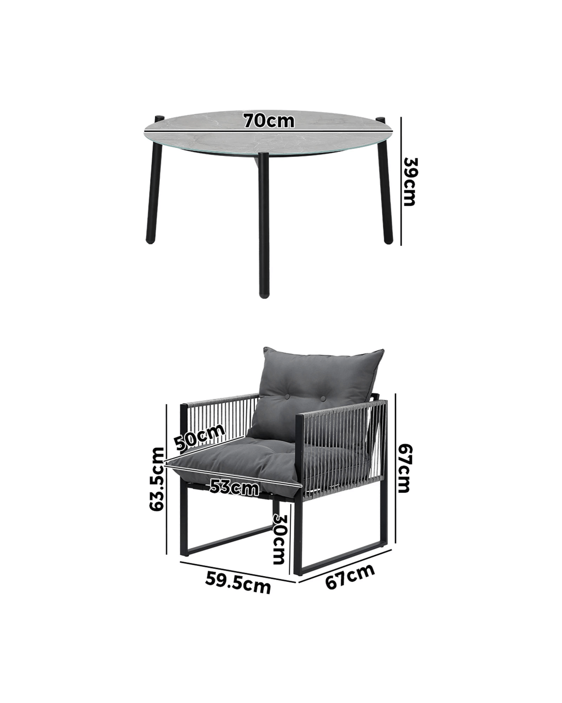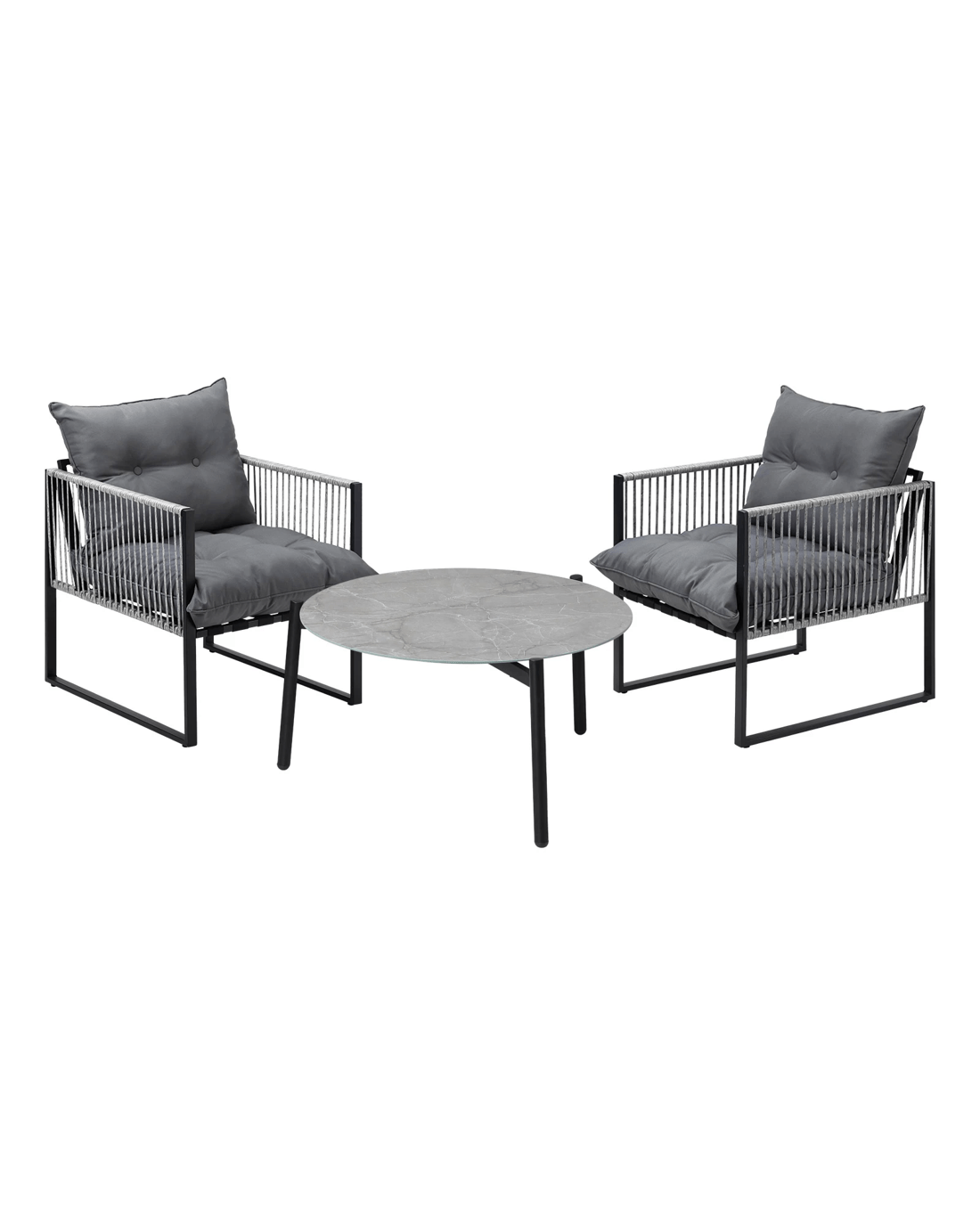 Sold by Kamprad's Oikos 1943Livsip 3PCS Outdoor Patio Set Table Garden Lounge Chairs Grey 70cm Coffee Table - Multi