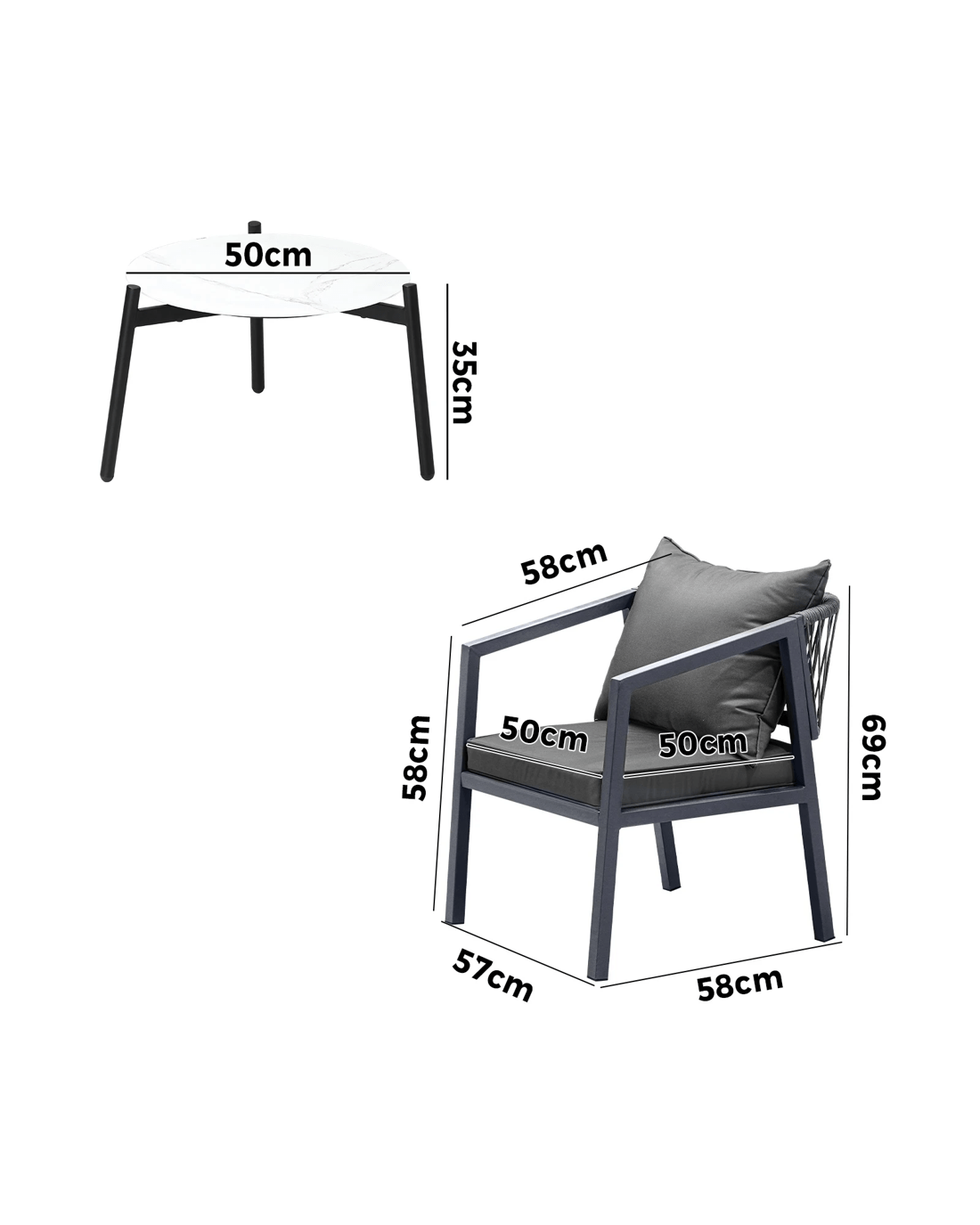 Sold by Kamprad's Oikos 1943Livsip 3pcs Outdoor Patio Setting Furniture Lounge Set 50cm Coffee Table - Multi